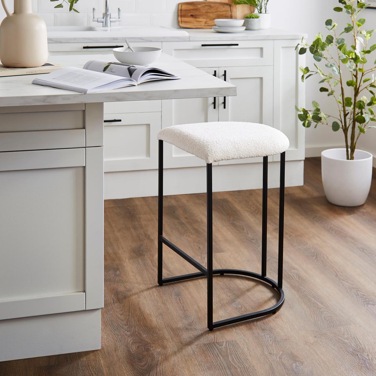 I really like this bar stool for adding a touch of subtle sophistication to a variety of interiors. The boucle seat offers both comfort and texture, making it a versatile choice for kitchens or breakfast bars with a modern or Scandinavian feel. Its ivory hue works well in neutral-toned schemes, but it can also serve as an elegant contrast in darker kitchens or with timber accents. Practical styling tips include pairing it with sleek, minimalist surfaces to highlight its soft texture, or mixing it with other boucle/textured pieces for a layered, cosy look. Its slim profile makes it a great option for smaller spaces or for creating an uncluttered, airy feel at your breakfast counter.