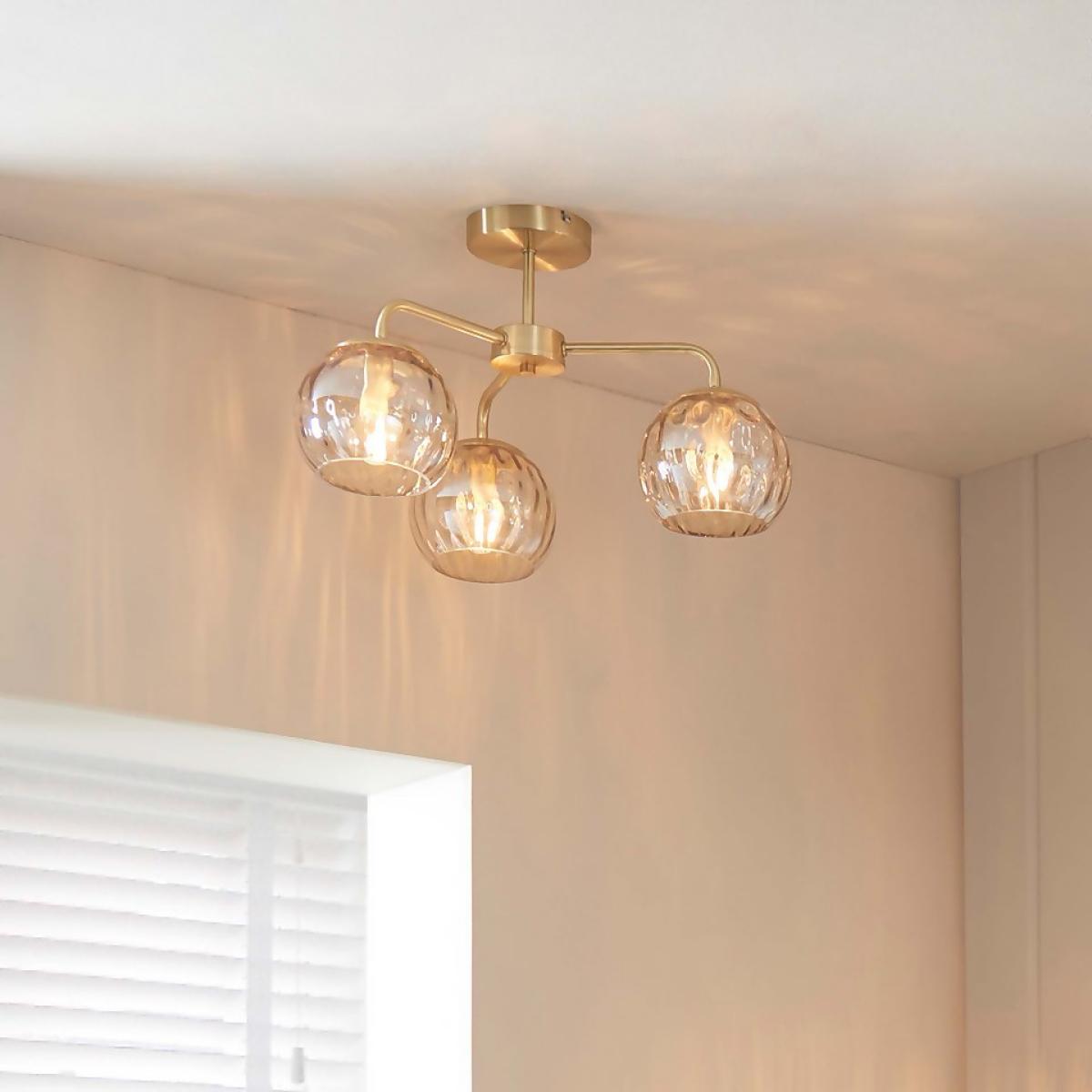 Champagne lustre glass meets modern satin brushed gold plating in a combination of modern classic styling. This collection of interior lighting is the perfect addition to your modern home. Add a touch of style to your interior with a matching wall light and floor lamp. Ideal when paired with up to date LED filament lamps.