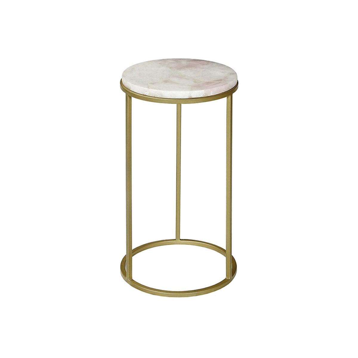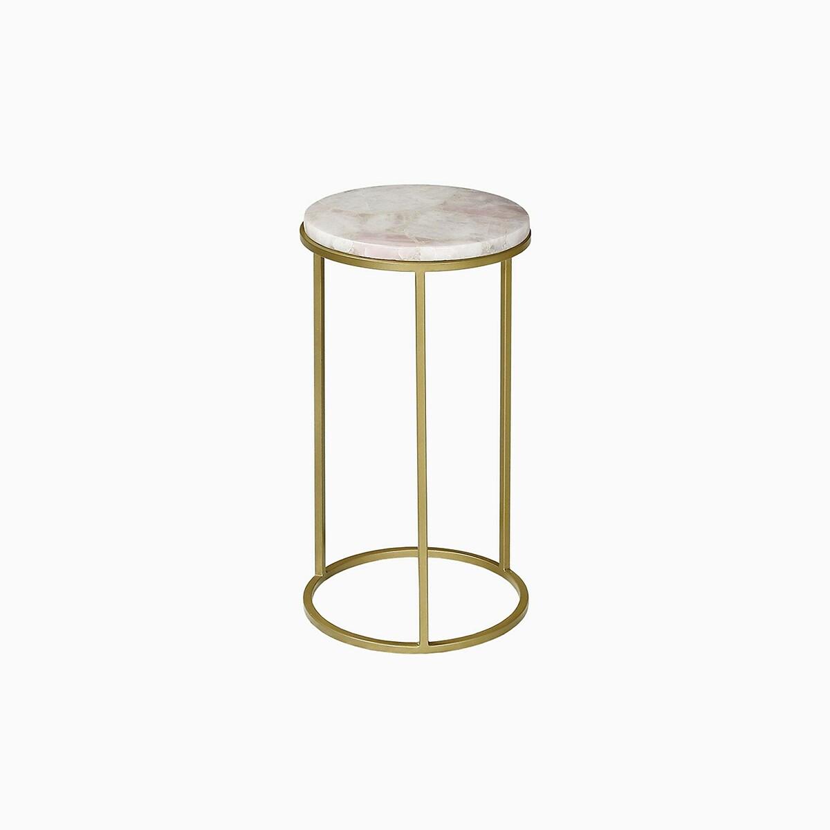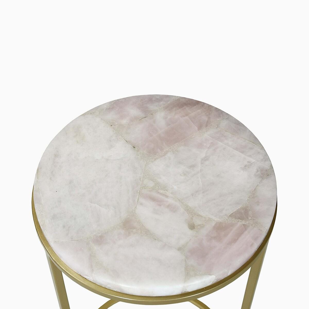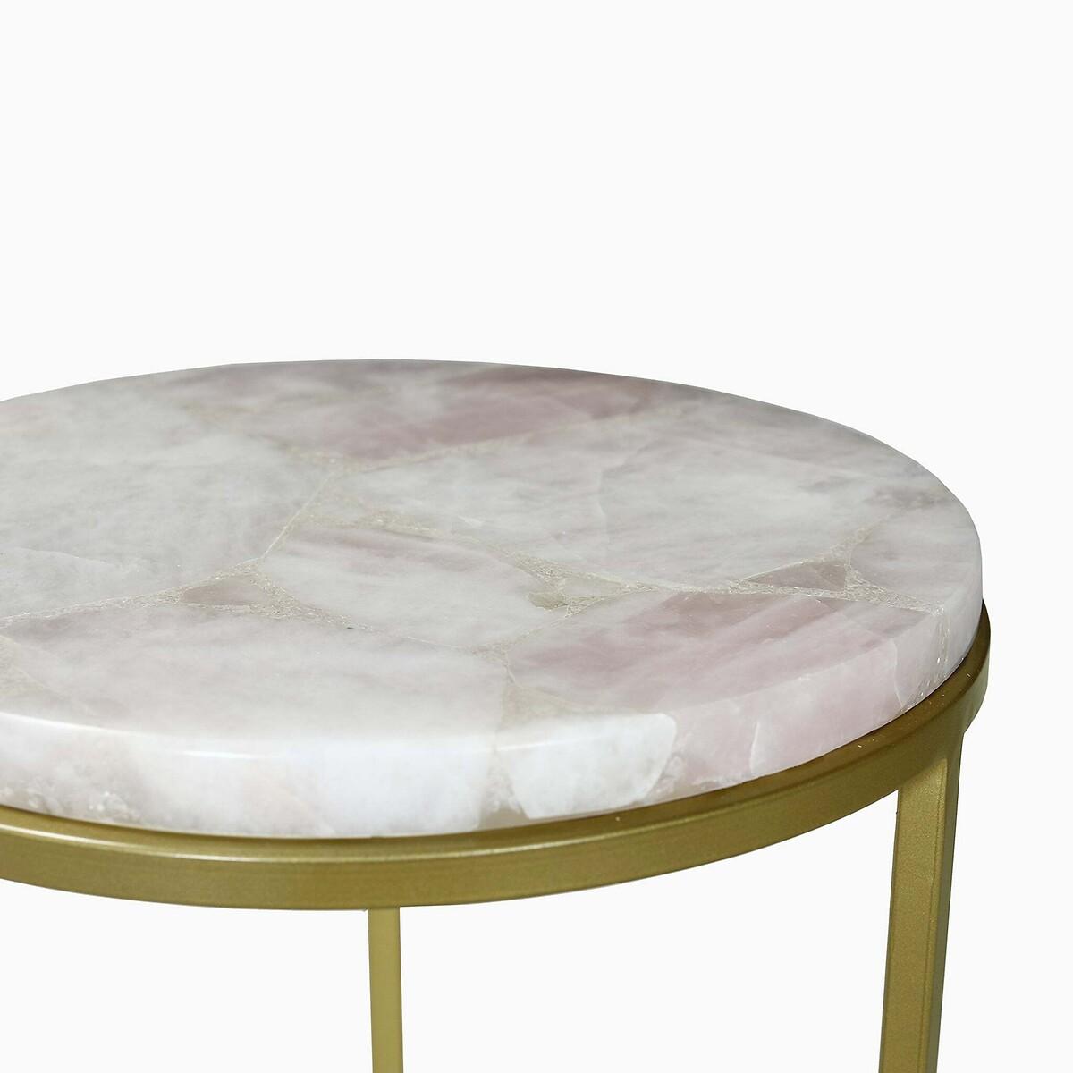 The Geneva end table offers effortless elegance with its natural rose quartz top, showcasing mesmerizing, one-of-a-kind patterns. Supported by slender gold-toned iron legs, the piece exudes a jewel-like sophistication. Perfect as a standalone statement in modern or eclectic interiors, it also invites personalization—whether with a cherished photo frame or a vibrant plant—to enhance your space with refined individuality. Product details• Natural agate• Round tabletop• Gold iron base• Delivered fully assembled. Product Composition - Agate,Metal. Product Dimensions - 30 cm x30 cm x55 cm , Weight - 9.45 KG• Clearance to floor: 53 cm Package Dimensions - 64 cm x 40 cm x 40 cm, Weight 13.25 kg. This product will be dispatched by one of our trusted suppliers. You’ll be contacted by their selected courier about your delivery.