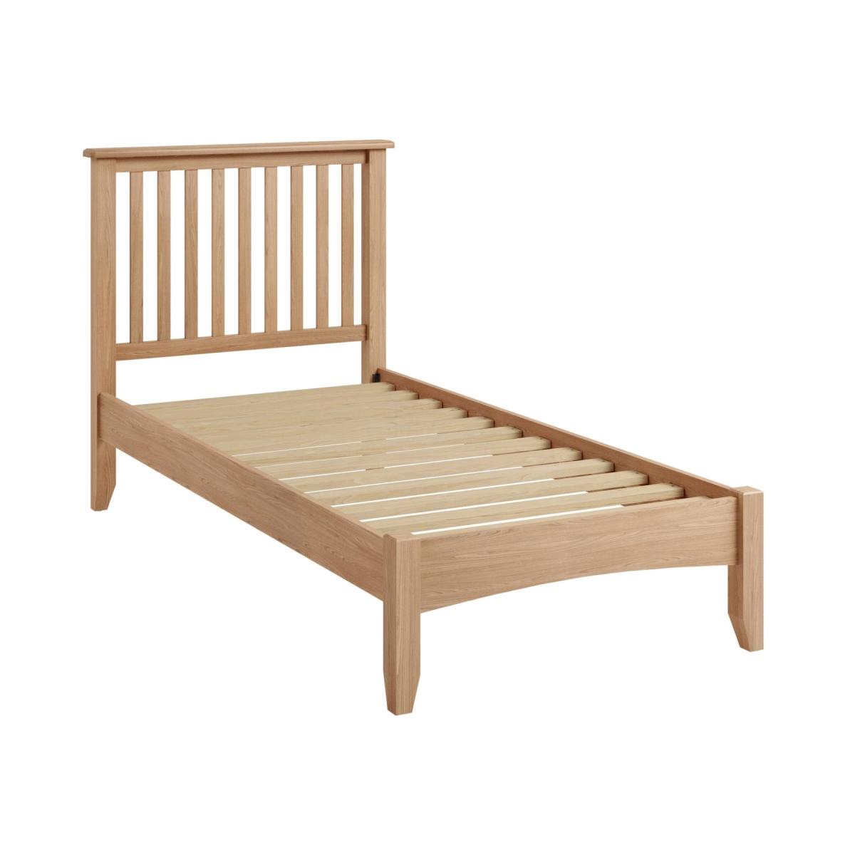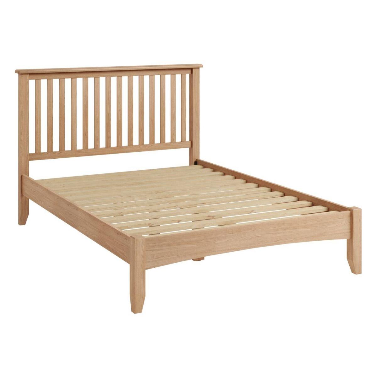 The Geneva collection is not only beautiful and perfect for adding a contemporary feel to your bedroom it also offers exceptional value for money.  Showcasing a stylish slatted headboard with rounded corners and bevel detailing to the edges along with tapered legs, coming together perfectly to create both a modern and practical look. Dimensions:Double -W149cm x D204cm x H110cm. King - W165cm x D214cm x H110cm. Light oak finish Partial Assembly required