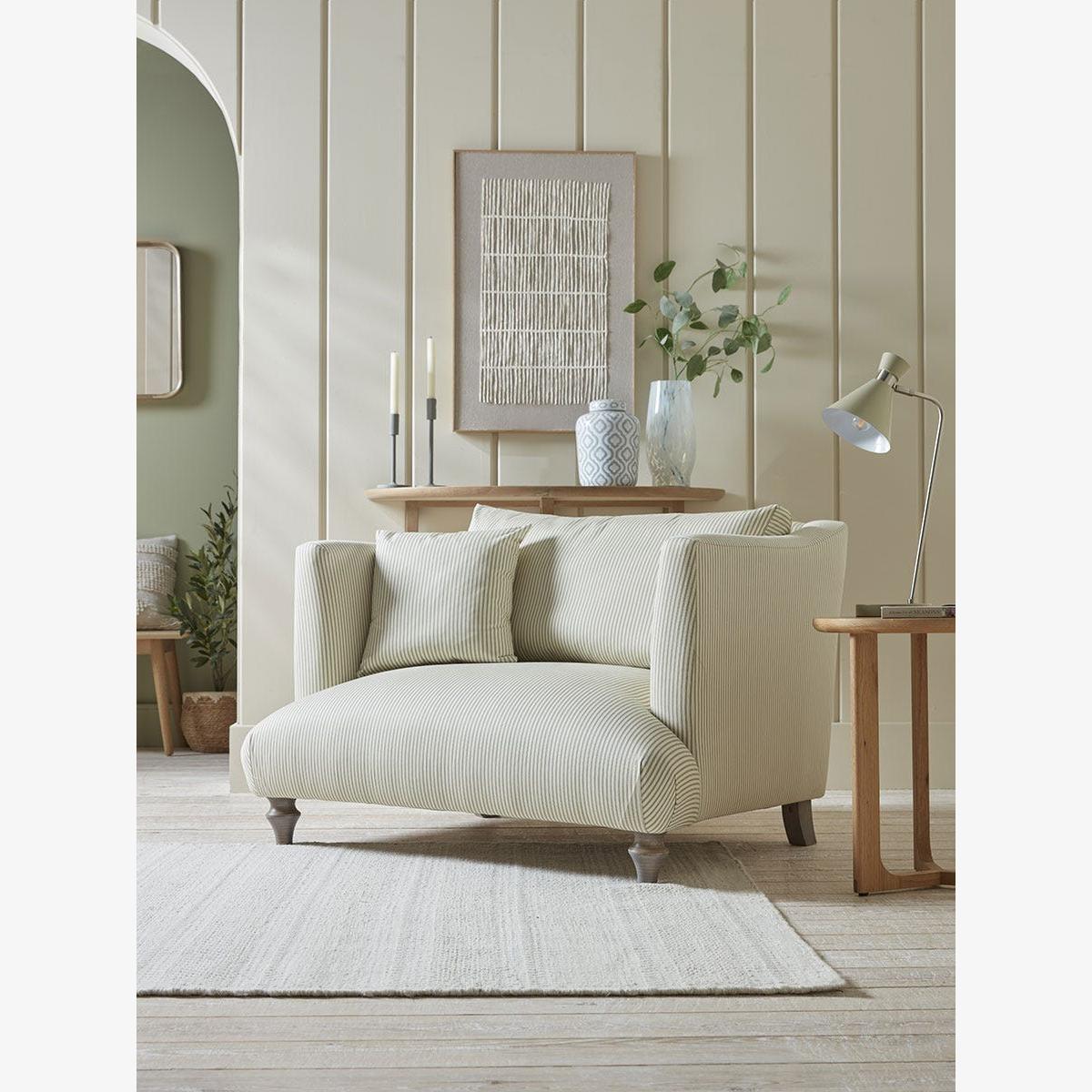 Deep and welcoming, our Geneve Loveseat provides the perfect spot to cuddle up. With a cocooning back and arms, this oversized seat is available in six fabrics and an extensive range of colours. A luxurious low fixed seat offers premium comfort and support enhanced by the feather seat back and a self-coloured scatter cushion. Elegant turned oak legs complete this refined but relaxed piece. The Geneve range includes two seater and three seater sofas, an armchair and an ottoman. Our Geneve collection can be upholstered in a choice of 34 distinctive shades and six fabrics to suit your style. Read our Upholstery FAQs View our full Upholstery Terms and Conditions