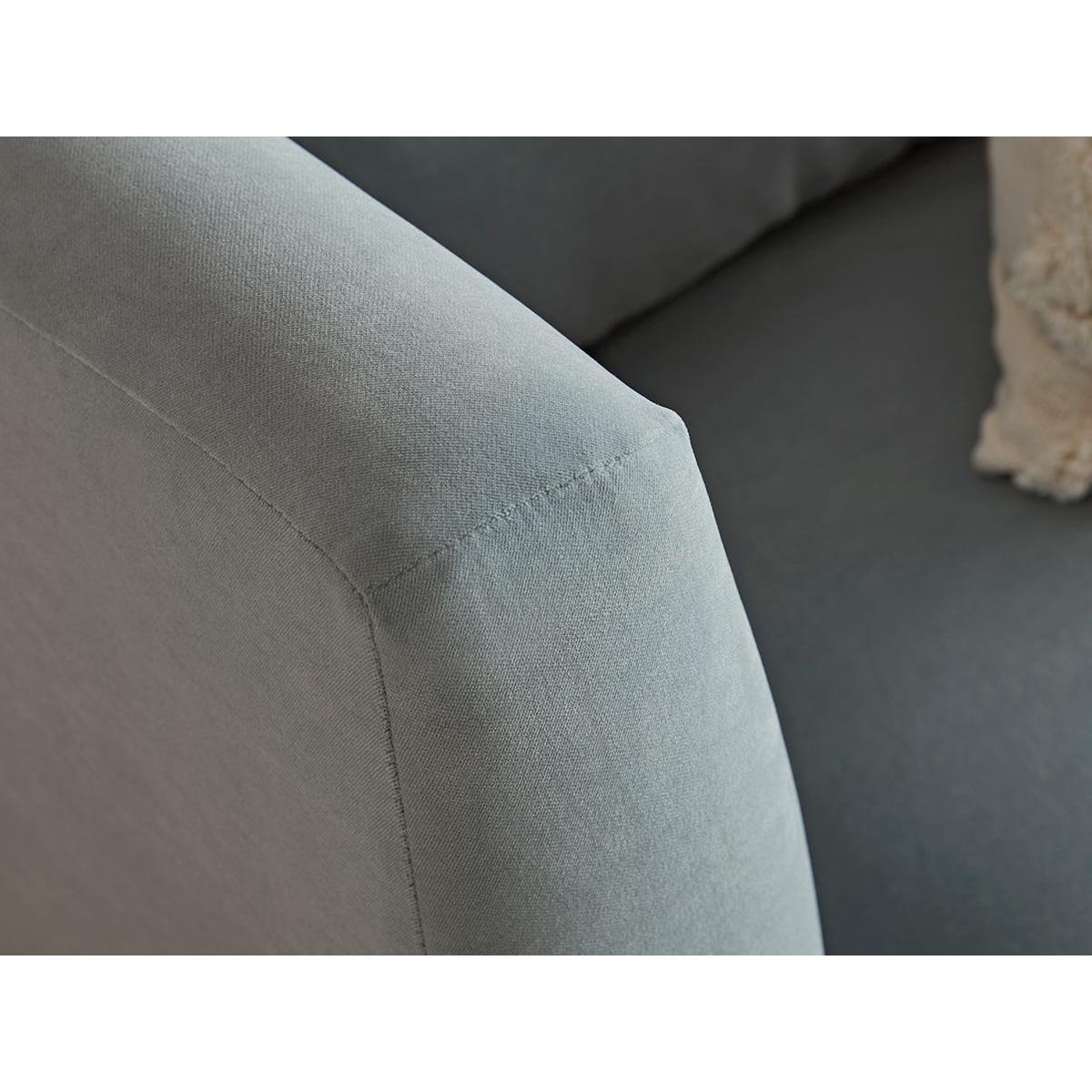 Deep and welcoming, our Geneve Loveseat provides the perfect spot to cuddle up. With a cocooning back and arms, this oversized seat is available in six fabrics and an extensive range of colours. A luxurious low fixed seat offers premium comfort and support enhanced by the feather seat back and a self-coloured scatter cushion. Elegant turned oak legs complete this refined but relaxed piece. The Geneve range includes two seater and three seater sofas, an armchair and an ottoman. Our Geneve collection can be upholstered in a choice of 34 distinctive shades and six fabrics to suit your style. Cotton Linen Our cotton linen mix comes in 10 carefully curated shades and has a brushed finish which leaves this plain weave durable, but still peachy soft to the touch. 63% cotton 37% linen Smart Velvet With the same luxurious look and feel of cotton velvet, this collection of 10 richly coloured velvets is a stain resistant and hardwearing option for busy homes. 100% polyester Herringbone In a choice of six chalky pastels and classic neutrals, this herringbone fabric features a subtle self-coloured weave for a textural finish. 25% cotton 25% linen 25% viscose 25% polyester Bouclé With three neutral colours to choose from, our bouclé fabric is springy to the touch and wonderfully soft, providing both depth and warmth. 80% polyester 10% acrylic 10% cotton Leather Supple and luxurious natural leather that has been lightly buffed and carefully brushed with oils and waxes to achieve a soft buttery feel. 100% leather For further information on the range, please select one of the following: Order a fabric swatch Read our Upholstery FAQs View our full Upholstery Terms and Conditions