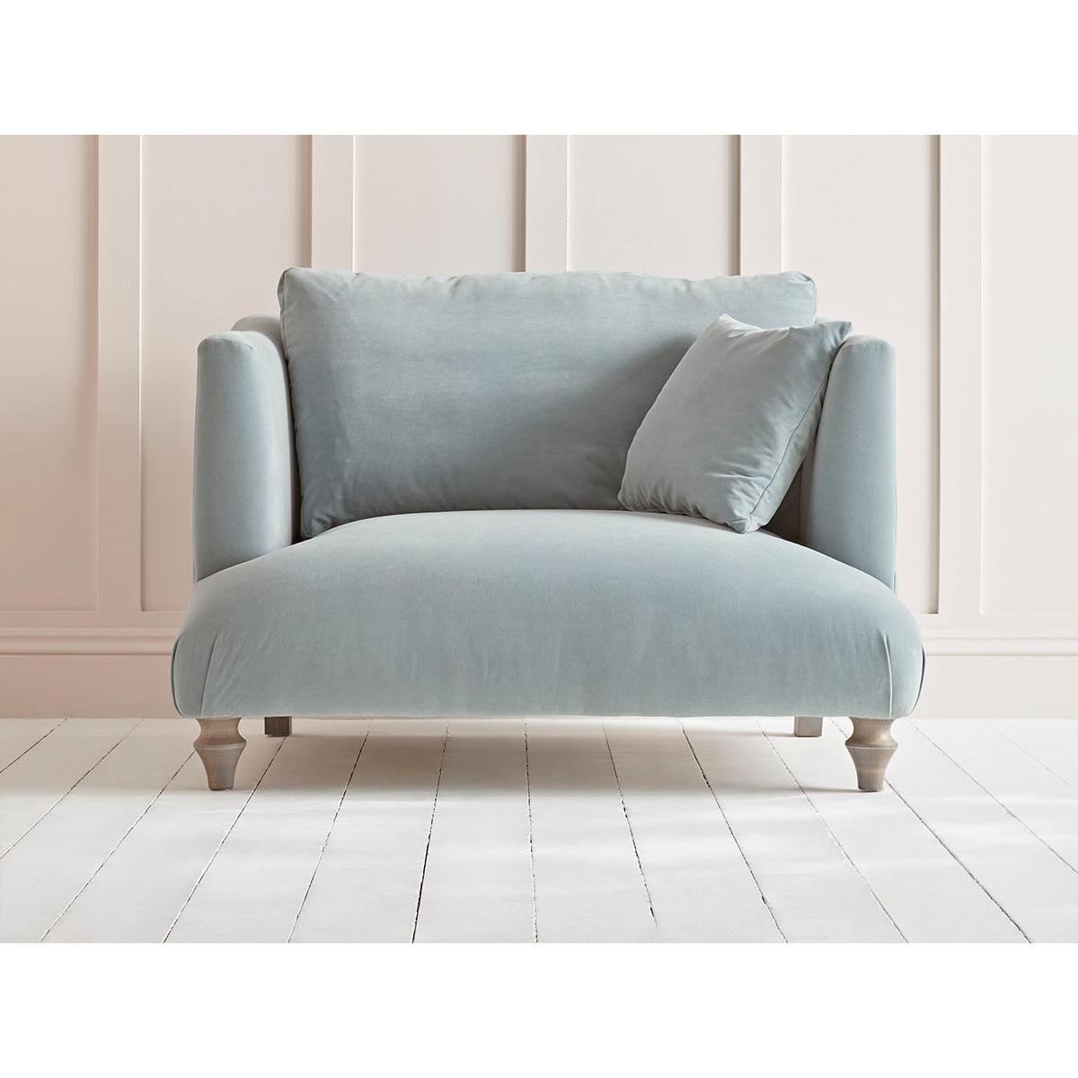 Deep and welcoming, our Geneve Loveseat provides the perfect spot to cuddle up. With a cocooning back and arms, this oversized seat is available in six fabrics and an extensive range of colours. A luxurious low fixed seat offers premium comfort and support enhanced by the feather seat back and a self-coloured scatter cushion. Elegant turned oak legs complete this refined but relaxed piece. The Geneve range includes two seater and three seater sofas, an armchair and an ottoman. Our Geneve collection can be upholstered in a choice of 34 distinctive shades and six fabrics to suit your style. Cotton Linen Our cotton linen mix comes in 10 carefully curated shades and has a brushed finish which leaves this plain weave durable, but still peachy soft to the touch. 63% cotton 37% linen Smart Velvet With the same luxurious look and feel of cotton velvet, this collection of 10 richly coloured velvets is a stain resistant and hardwearing option for busy homes. 100% polyester Herringbone In a choice of six chalky pastels and classic neutrals, this herringbone fabric features a subtle self-coloured weave for a textural finish. 25% cotton 25% linen 25% viscose 25% polyester Bouclé With three neutral colours to choose from, our bouclé fabric is springy to the touch and wonderfully soft, providing both depth and warmth. 80% polyester 10% acrylic 10% cotton Leather Supple and luxurious natural leather that has been lightly buffed and carefully brushed with oils and waxes to achieve a soft buttery feel. 100% leather For further information on the range, please select one of the following: Order a fabric swatch Read our Upholstery FAQs View our full Upholstery Terms and Conditions