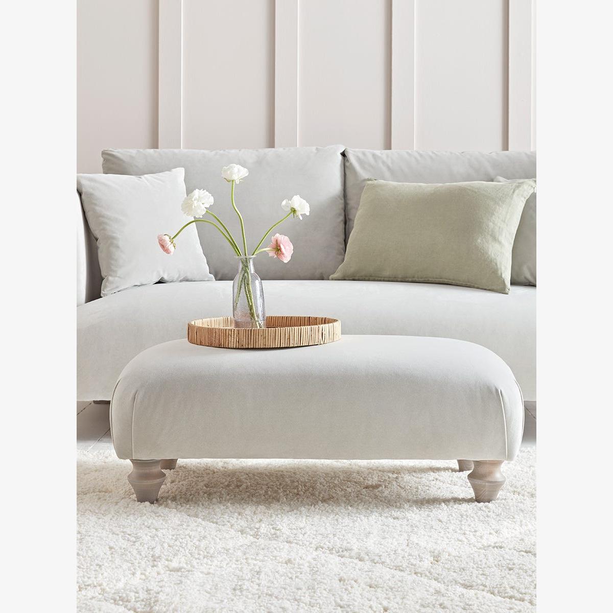 The neat hand pleated corners on the Geneve ottoman echoes the styling on the sofa and loveseats from the same range. A plump, cushioned base provides an elegant footstool that will complete your living room styling. The Geneve range includes two seater and three seater sofas, an armchair and an ottoman. Our Geneve collection can be upholstered in a choice of 34 distinctive shades and six fabrics to suit your style. Read our Upholstery FAQs View our full Upholstery Terms and Conditions
