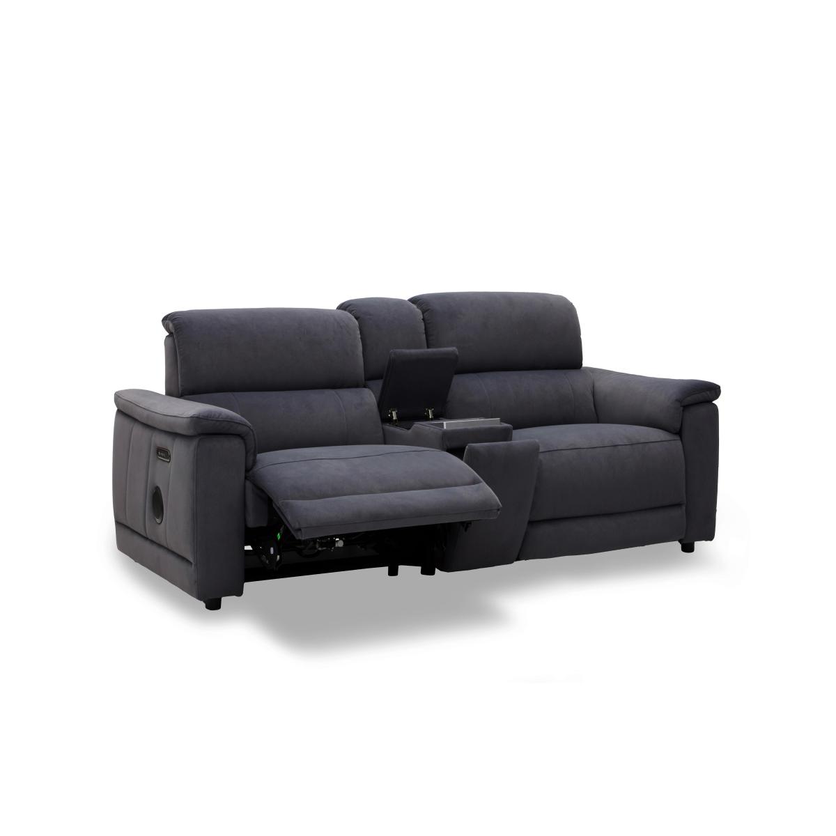 Here’s the sofa that fits your high-tech lifestyle. With media capabilities that include a smart console, touchscreen interface, Bluetooth speakers, and USB and USB-C charging, you can connect your devices and enjoy a cinematic audio experience while chilling in comfort. And with a slew of power features, including power footrests, lumbar support and telescopic headrests, heated seats and cooling cupholders, this is comfort like never before. Aside from the outstanding functionality, the Genius range strikes just the right balance between sumptuous sofa style and clean-lined modern design. Available in both fabric and 100% leather upholstery, the Genius range of sofas, armchairs and footstools is handcrafted just for Furniture Village. Enjoy high-tech comfort and total control over your entertainment with this stunning two-seater media sofa with a smart touchscreen console, power recliners and headrests and even heated seats. Why you’ll love it What else could we name this sofa range? For style and functionality, it’s genius. This fantastic 2-seater media sofa has everything you need to relax. Optimised for your entertainment with a smart media console. Control any connected device via the touchscreen interface. Bluetooth speakers mean incredible sound, whether you're watching a movie or listening to music. And with heated seats and cooling cupholders, this sofa is ready for anything. Just chilling? You’ll enjoy perfect-position power comfort from head to toe. Power elevating footrests, power lumbar support and power telescopic headrests. Plus sprung seats, pocket sprung seat cushioning and foam-filled back cushioning. Sumptuous modern style with understated stitching. Built-in USB and USB-C charging. Choose from a huge range of fabrics for the upholstery. Also available in 100% leather. Handcrafted exclusively for Furniture Village. This 2-seater power recliner media sofa is part of our Genius range. What you need to know Medium comfort level. Seat suspension: sinuous spring. Seat cushioning: pocket spring, foam and Dacron. Cushioning is fixed. Back suspension: webbing. Back cushioning: foam and Dacron. Cushioning is fixed. Back and feet are removable. Please allow time for new recliners to ease. Minor gaps are necessary to ensure ease of recliner motion and may be exaggerated depending on floor type. Be sure to plump seat back cushions and arm cushioning daily for maximum comfort. Flattening and shading of heavy wear areas on pile fabrics is unavoidable. Clean regularly using a soft brush or vacuum with the curtain attachment. Deal with any spills promptly. Professional cleaning advised for oil- and grease-based stains. Please read our upholstery care guide for more advice. Item code: GENI2PMDFAB-015