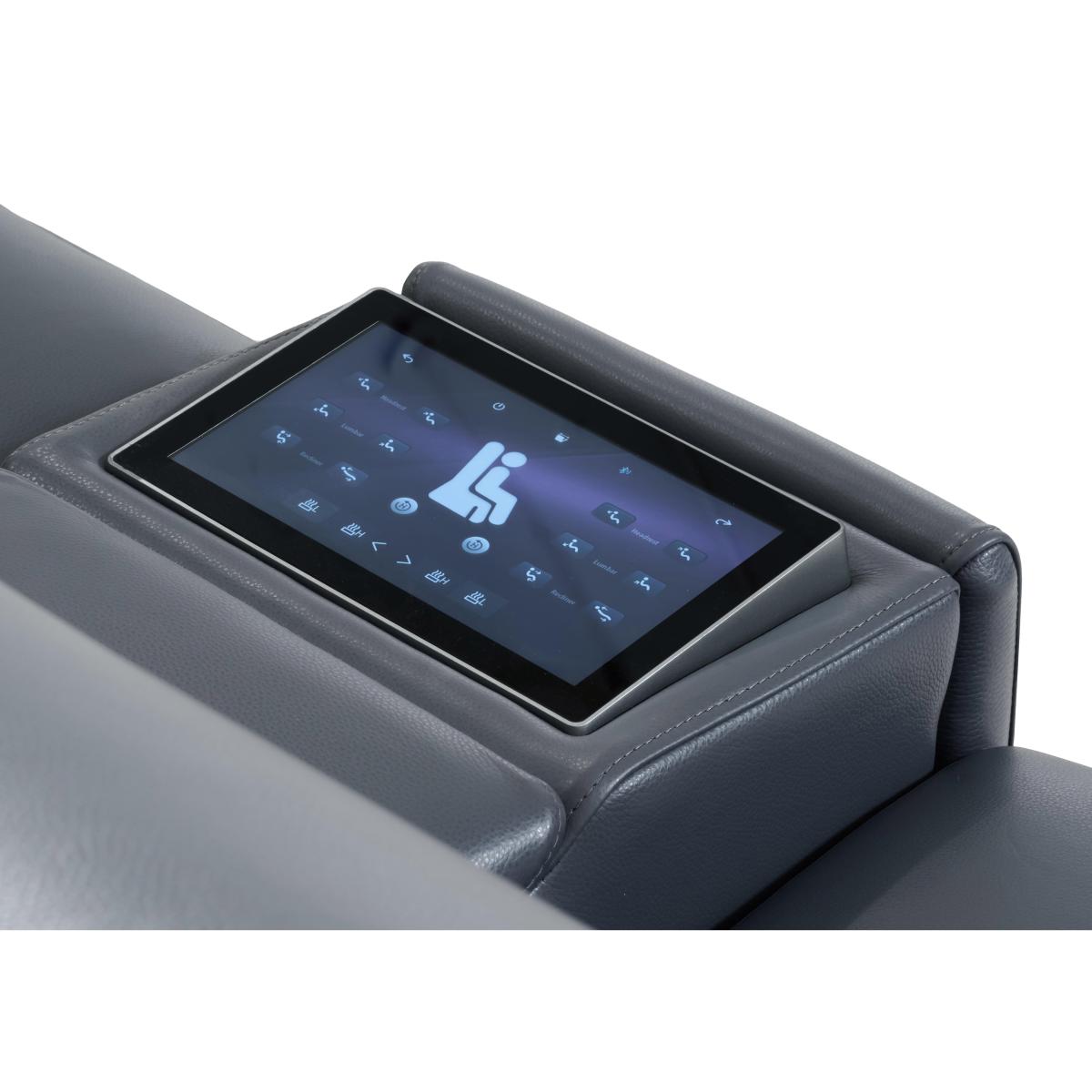 Here’s the sofa that fits your high-tech lifestyle. With media capabilities that include a smart console, touchscreen interface, Bluetooth speakers, and USB and USB-C charging, you can connect your devices and enjoy a cinematic audio experience while chilling in comfort. And with a slew of power features, including power footrests, lumbar support and telescopic headrests, heated seats and cooling cupholders, this is comfort like never before. Aside from the outstanding functionality, the Genius range strikes just the right balance between sumptuous sofa style and clean-lined modern design. Available in both fabric and 100% leather upholstery, the Genius range of sofas, armchairs and footstools is handcrafted just for Furniture Village. Enjoy high-tech comfort and total control over your entertainment with this stunning three-seater leather media sofa with a smart touchscreen console, power recliners and headrests and even heated seats. Why you’ll love it What else could we name this sofa range? For style and functionality, it’s genius. This fantastic 3-seater leather media sofa has everything you need to relax. Optimised for your entertainment with a smart media console. Control any connected device via the touchscreen interface. Bluetooth speakers mean incredible sound, whether you're watching a movie or listening to music. And with heated seats and cooling cupholders, this sofa is ready for anything. Just chilling? You’ll enjoy perfect-position power comfort from head to toe. Power elevating footrests, power lumbar support and power telescopic headrests. Plus sprung seats, pocket sprung seat cushioning and foam-filled back cushioning. Sumptuous modern style with understated stitching. Built-in USB and USB-C charging. In a choice of colours for the 100% leather upholstery. Handcrafted exclusively for Furniture Village. This 3-seater leather power recliner media sofa is part of our Genius range. What you need to know Medium comfort level. Seat suspension: sinuous spring. Seat cushioning: pocket spring, foam and Dacron. Cushioning is fixed. Back suspension: webbing. Back cushioning: foam and Dacron. Cushioning is fixed. Back and feet are removable. Please allow time for new recliners to ease. Minor gaps are necessary to ensure ease of recliner motion and may be exaggerated depending on floor type. Be sure to plump seat back cushions and arm cushioning daily for maximum comfort. Leather has unique marks and characteristics with variation in colour and texture. Leather softens with use. Smoothing the tops of leather cushions prevents signs of visual comfort. Please read our upholstery care guide for more advice. Item code: GENI3PMD60-001