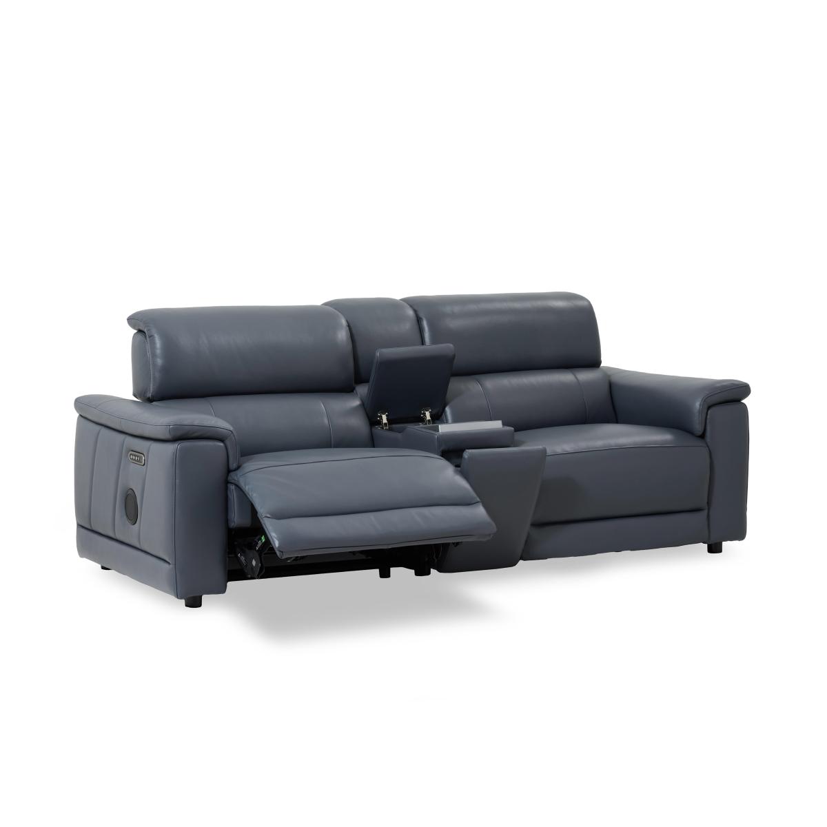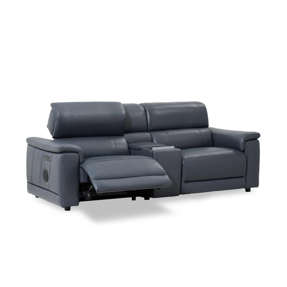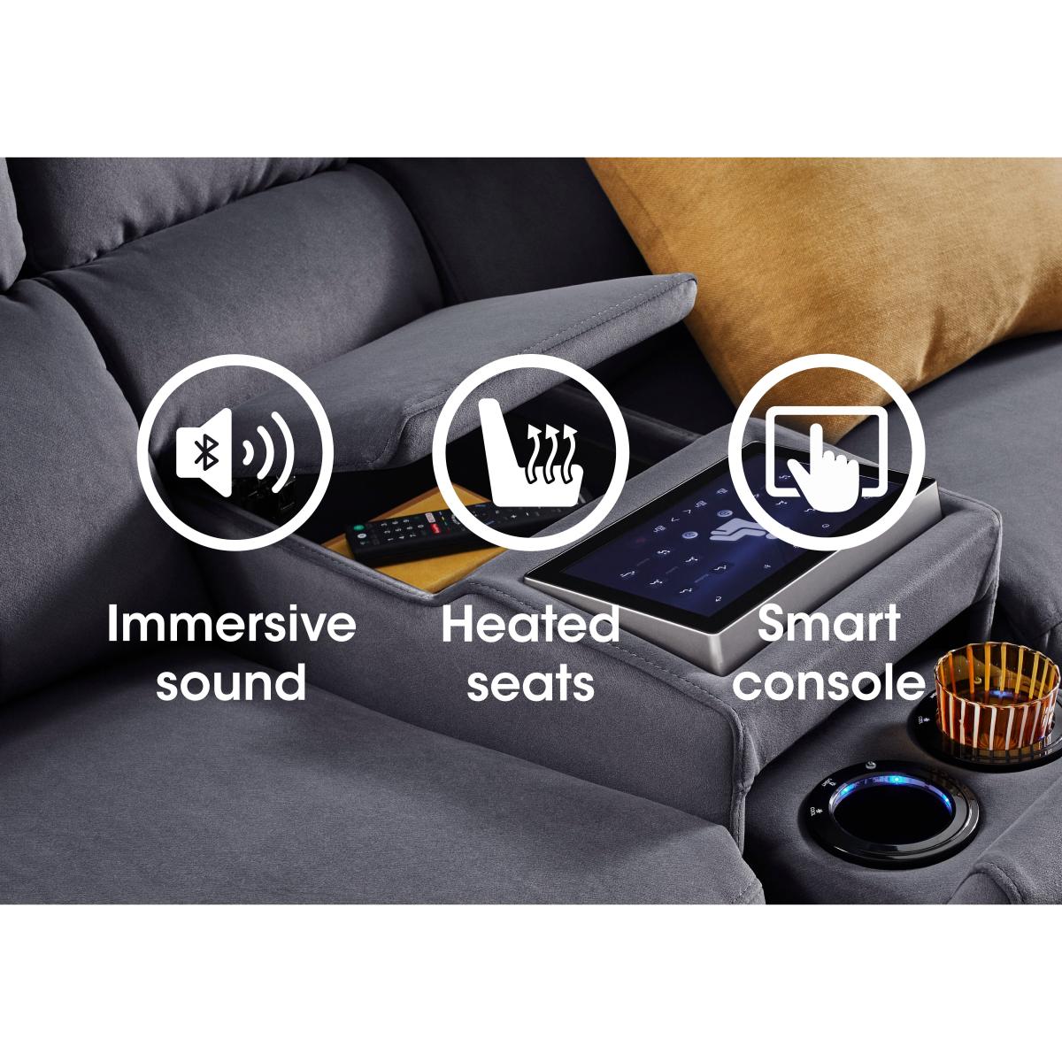 Here’s the sofa that fits your high-tech lifestyle. With media capabilities that include a smart console, touchscreen interface, Bluetooth speakers, and USB and USB-C charging, you can connect your devices and enjoy a cinematic audio experience while chilling in comfort. And with a slew of power features, including power footrests, lumbar support and telescopic headrests, heated seats and cooling cupholders, this is comfort like never before. Aside from the outstanding functionality, the Genius range strikes just the right balance between sumptuous sofa style and clean-lined modern design. Available in both fabric and 100% leather upholstery, the Genius range of sofas, armchairs and footstools is handcrafted just for Furniture Village. Enjoy high-tech comfort and total control over your entertainment with this stunning three-seater leather media sofa with a smart touchscreen console, power recliners and headrests and even heated seats. Why you’ll love it What else could we name this sofa range? For style and functionality, it’s genius. This fantastic 3-seater leather media sofa has everything you need to relax. Optimised for your entertainment with a smart media console. Control any connected device via the touchscreen interface. Bluetooth speakers mean incredible sound, whether you're watching a movie or listening to music. And with heated seats and cooling cupholders, this sofa is ready for anything. Just chilling? You’ll enjoy perfect-position power comfort from head to toe. Power elevating footrests, power lumbar support and power telescopic headrests. Plus sprung seats, pocket sprung seat cushioning and foam-filled back cushioning. Sumptuous modern style with understated stitching. Built-in USB and USB-C charging. In a choice of colours for the 100% leather upholstery. Handcrafted exclusively for Furniture Village. This 3-seater leather power recliner media sofa is part of our Genius range. What you need to know Medium comfort level. Seat suspension: sinuous spring. Seat cushioning: pocket spring, foam and Dacron. Cushioning is fixed. Back suspension: webbing. Back cushioning: foam and Dacron. Cushioning is fixed. Back and feet are removable. Please allow time for new recliners to ease. Minor gaps are necessary to ensure ease of recliner motion and may be exaggerated depending on floor type. Be sure to plump seat back cushions and arm cushioning daily for maximum comfort. Leather has unique marks and characteristics with variation in colour and texture. Leather softens with use. Smoothing the tops of leather cushions prevents signs of visual comfort. Please read our upholstery care guide for more advice. Item code: GENI3PMD60-011