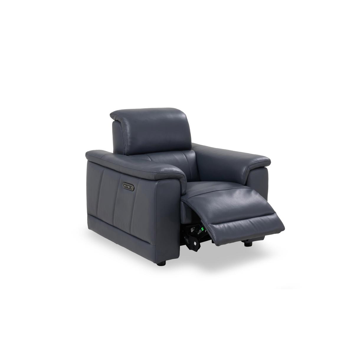 Here’s the sofa that fits your high-tech lifestyle. With media capabilities that include a smart console, touchscreen interface, Bluetooth speakers, and USB and USB-C charging, you can connect your devices and enjoy a cinematic audio experience while chilling in comfort. And with a slew of power features, including power footrests, lumbar support and telescopic headrests, heated seats and cooling cupholders, this is comfort like never before. Aside from the outstanding functionality, the Genius range strikes just the right balance between sumptuous sofa style and clean-lined modern design. Available in both fabric and 100% leather upholstery, the Genius range of sofas, armchairs and footstools is handcrafted just for Furniture Village. Enjoy complete comfort and cool modern style with this stunning and sumptuous leather power recliner chair with a power telescopic headrest, sprung seat and pocket spring cushioning. Why you’ll love it What else could we name this range? For style and functionality, it’s genius. This fantastic leather power recliner armchair has everything you need to relax. With a perfect-position power elevating footrest and power telescopic headrest. Plus a sprung seat, pocket sprung seat cushioning and foam-filled back cushioning. Built-in USB and USB-C charging. Sumptuous modern style with understated stitching. In a choice of colours for the 100% leather upholstery. Handcrafted exclusively for Furniture Village. This leather power recliner armchair is part of our Genius range. What you need to know Medium comfort level. Seat suspension: sinuous spring. Seat cushioning: pocket spring, foam and Dacron. Cushioning is fixed. Back suspension: webbing. Back cushioning: foam and Dacron. Cushioning is fixed. Back and feet are removable. Please allow time for new recliners to ease. Minor gaps are necessary to ensure ease of recliner motion and may be exaggerated depending on floor type. Be sure to plump seat back cushions and arm cushioning daily for maximum comfort. Leather has unique marks and characteristics with variation in colour and texture. Leather softens with use. Smoothing the tops of leather cushions prevents signs of visual comfort. Please read our upholstery care guide for more advice. Item code: GENICHPH40-007
