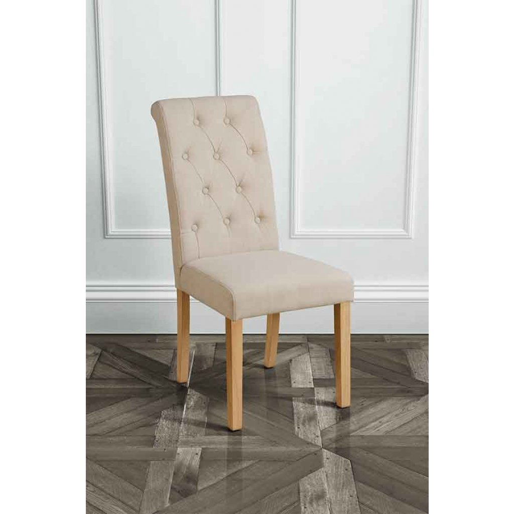 We sell hundreds to restaurants and hotels. The chair features a scroll top, high back design and are available in Grey with natural legs, Grey with dark legs, Jupiter Shiraz, Jupiter Silver, Golden Mink, Sherlock Mink and Smoke. We can re-upholster these chairs in a variety of fabrics for an additional fee, please contact us and we will be happy to send out any swatches you require. Legs are a light Oak finish on Solid wood. Spring seated.
