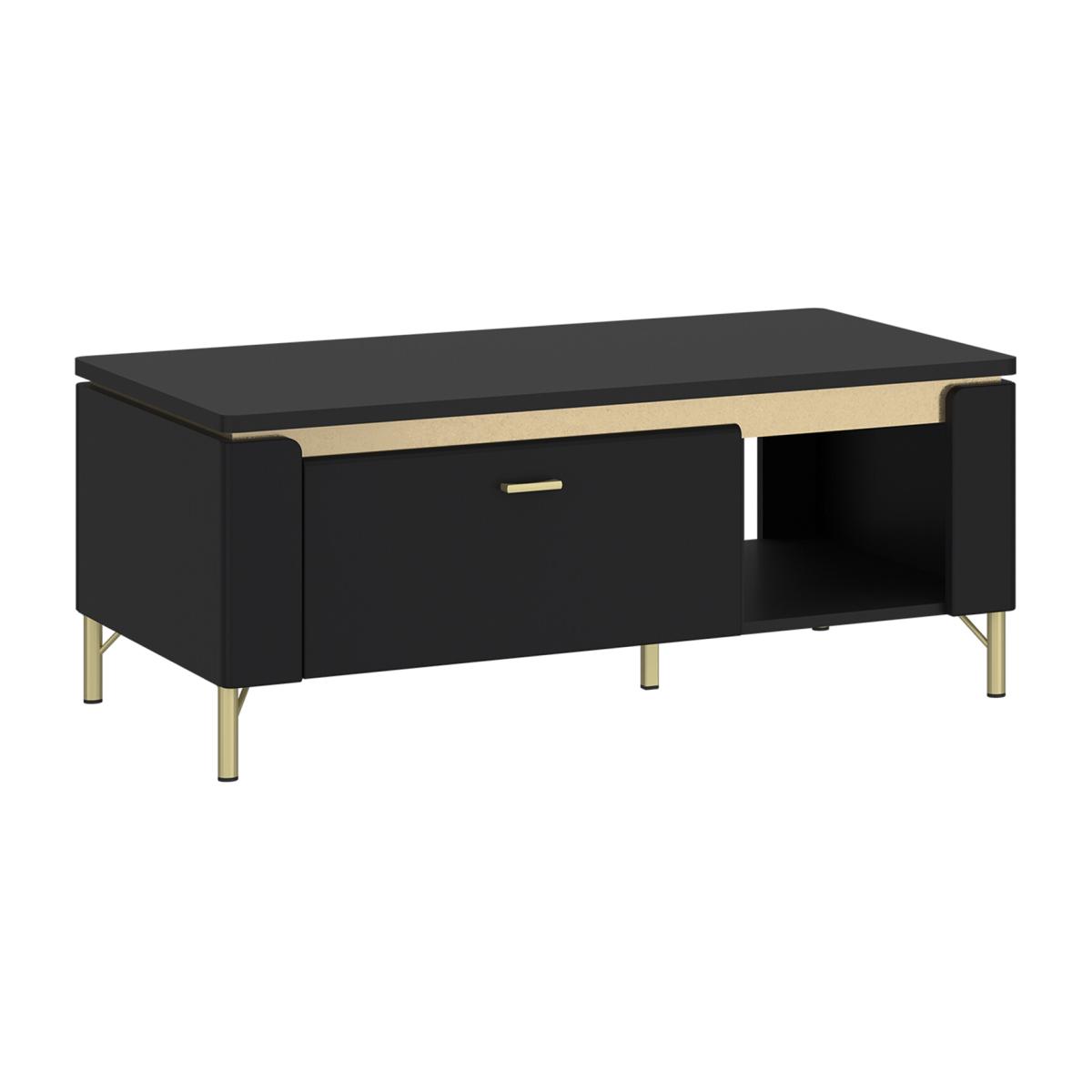 Transform your home with the stylish Genoa Coffee Table. Featuring a chic matte black finish complemented by stunning gold accents, this coffee table is a perfect addition to your living room. Crafted using laminated chipboard and MDF, this piece of furniture is built to last and comes with a spacious drawer and an open shelf to keep essentials handy. Part of the Genoa collection, you can pair it with matching furniture items to create a beautifully coordinated space.