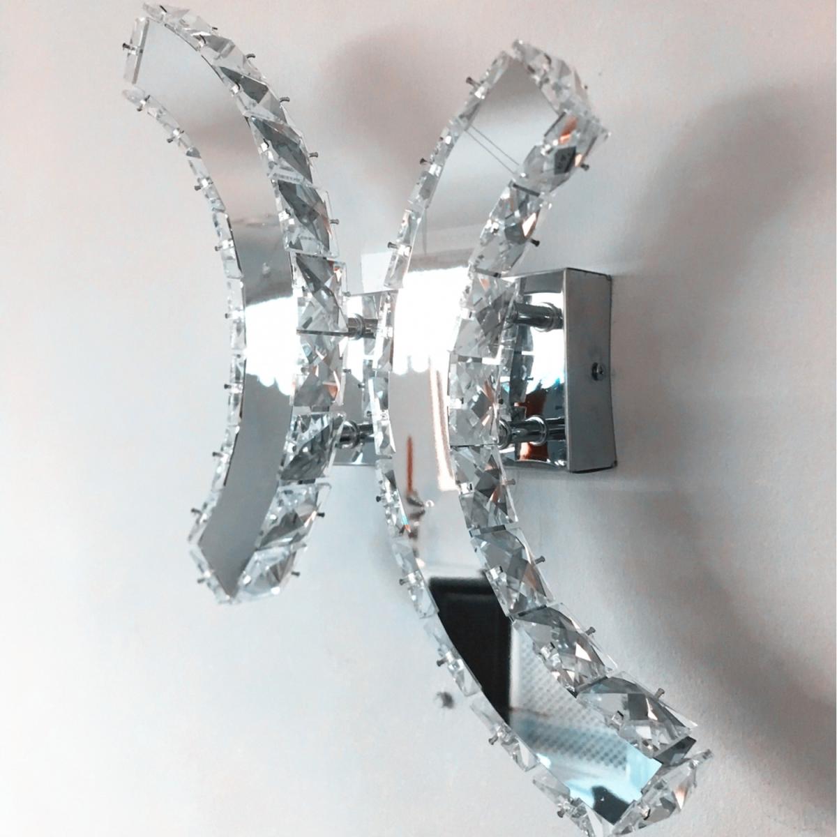 I really like this one because of its sleek, modern appeal and the way it blends functionality with eye-catching design. The clear crystal elements combined with the chrome finish make it a versatile choice that can elevate contemporary spaces, especially those with a minimal or industrial aesthetic. It works well in living rooms, dining areas, or even bedrooms where you want a statement piece with a touch of luxury. Practical styling tips include pairing it with neutral colour palettes to highlight its reflective quality, or installing multiple units for a more dramatic effect in larger rooms. Keep the surrounding decor simple to let the chandelier wall light be the star, and consider placing it where the light can cast interesting shadows and reflections for added visual interest.