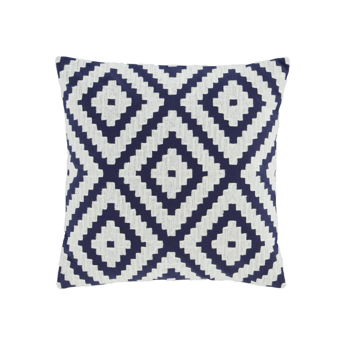 Geo Crewel Navy Cushion Cover Navy Blue/White