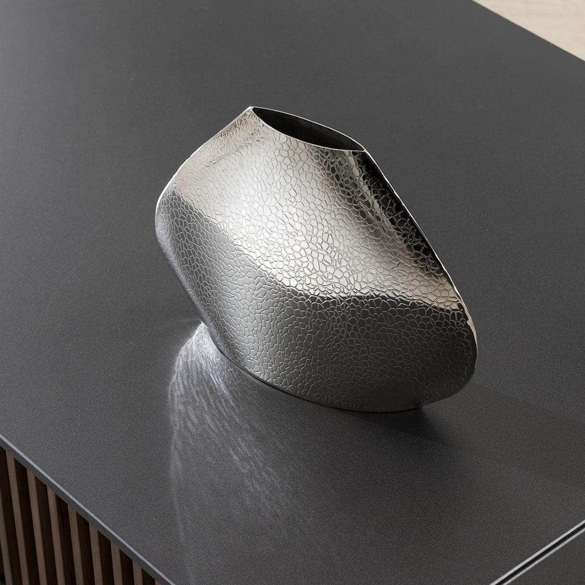 This bold and stylish vase is a great way to showcase flowers and make a real statement. Crafted from nickel-plated mild steel, it's etched with acid to create its distinctive cracked-egg shell pattern and texture. Slim and delicate yet broad and quirky, the Geo Vase is undeniably unique and guaranteed to draw admiring glances. If you need more information about this product, use the Live Chat service to speak to the team or send us a message. Spread the cost our with interest-free finance options. Minimum spend applies. W28cm D20cm H7cm The perfect home accessory Quatropi Modern Home Accessories
