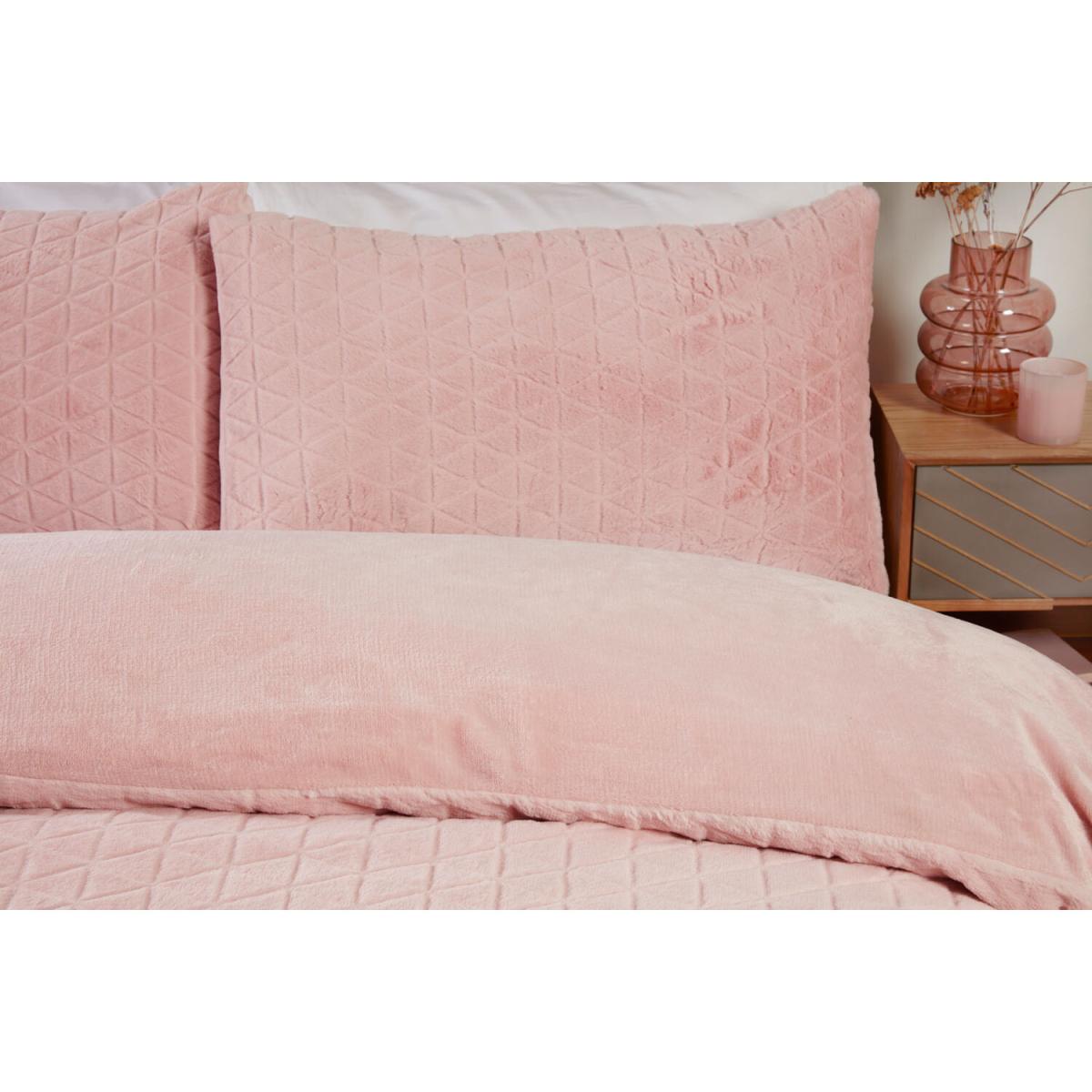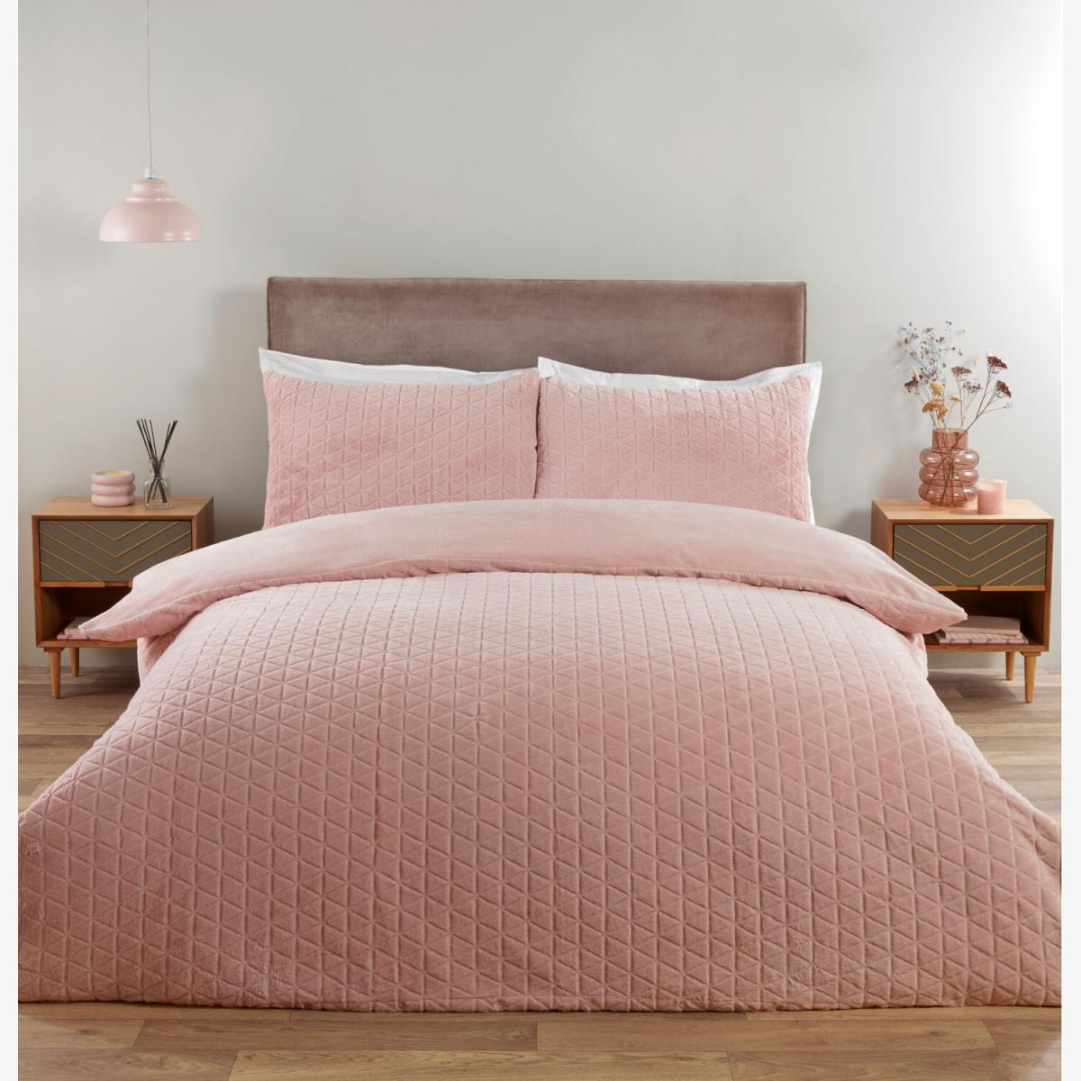 Geo Faux Fur Duvet Cover and Pillowcase Set - Blush / King