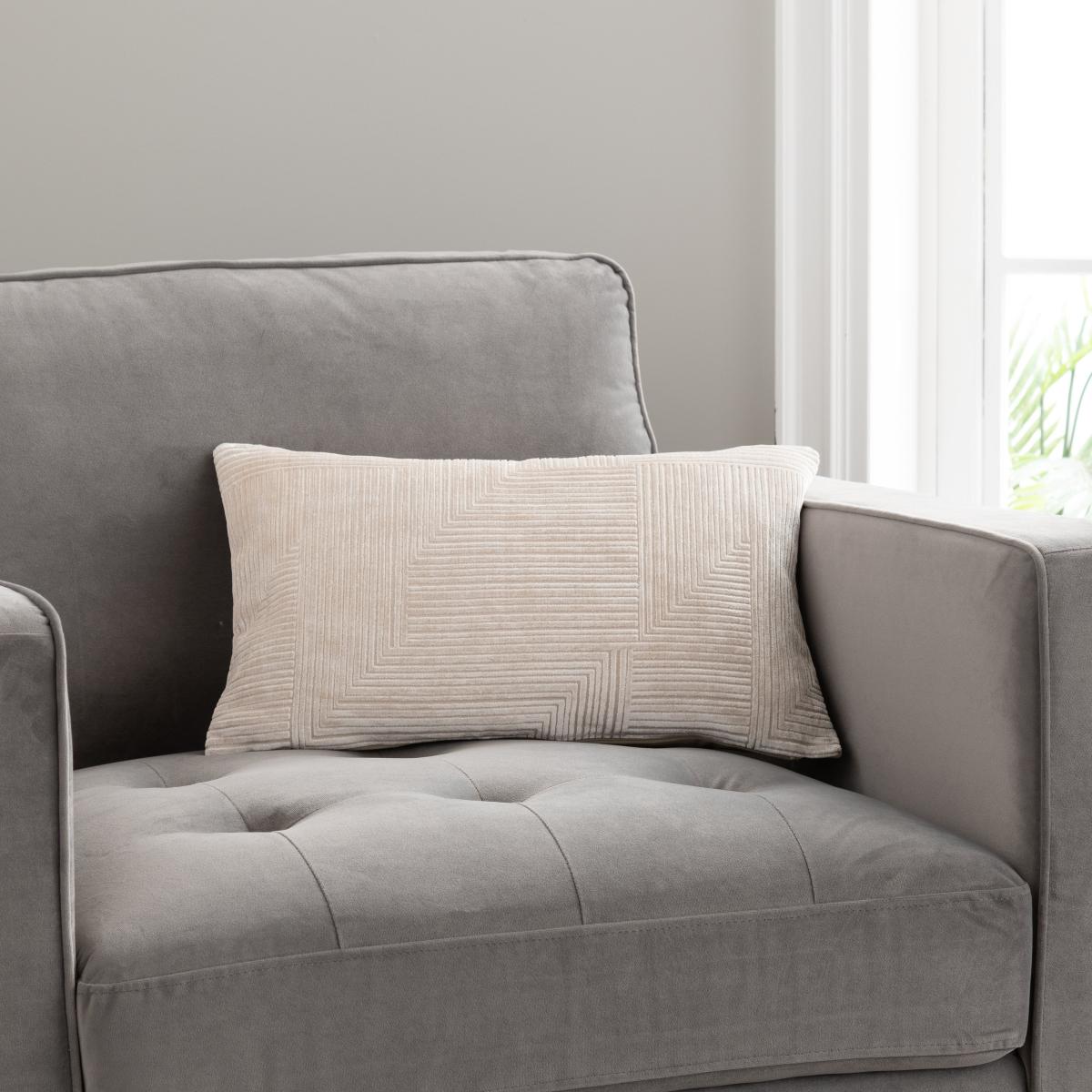 I love the Geo Lines cushion for its subtle, modern pattern and neutral hue, making it a versatile addition to various interiors. It works particularly well in contemporary or minimalist settings where clean lines and understated textures are key. For styling tips, try layering it with other textured cushions in complementary shades, or use it as a neutral anchor in a space with bolder colours and patterns. It’s practical too, as the simple design lends itself well to everyday living, while still adding a touch of refined detail to your sofa or armchair.