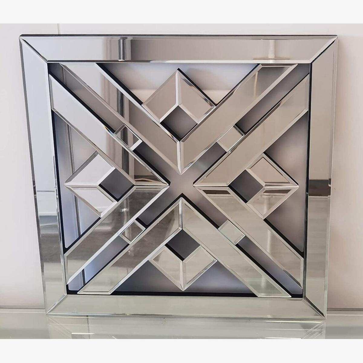 I love this mirror for its striking geometric design and contemporary silver finish, making it a versatile statement piece. It works particularly well in modern or minimalist interiors, where its reflective surface can enhance light and create a sense of space. To style it effectively, consider hanging it above a console or sideboard to add visual interest, or use it as a focal point in a hallway or living room. Pairing it with sleek, monochrome furniture or metallic accents can amplify its contemporary appeal. For practical styling tips, ensure it’s positioned at eye level and avoid overcrowding the surrounding space to allow its geometric features to stand out.