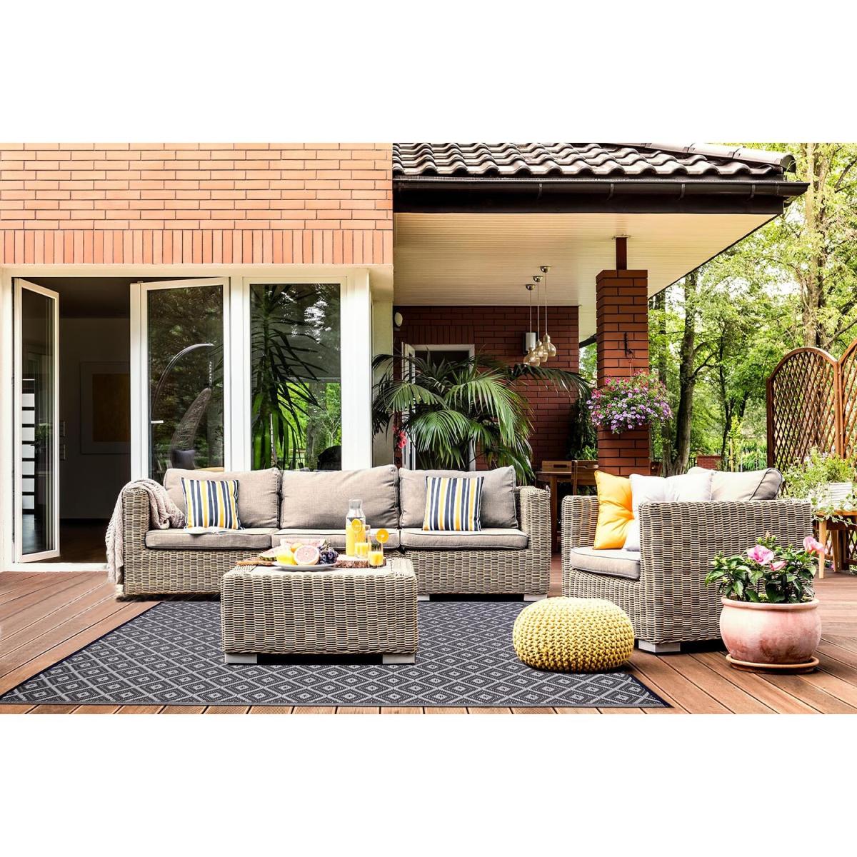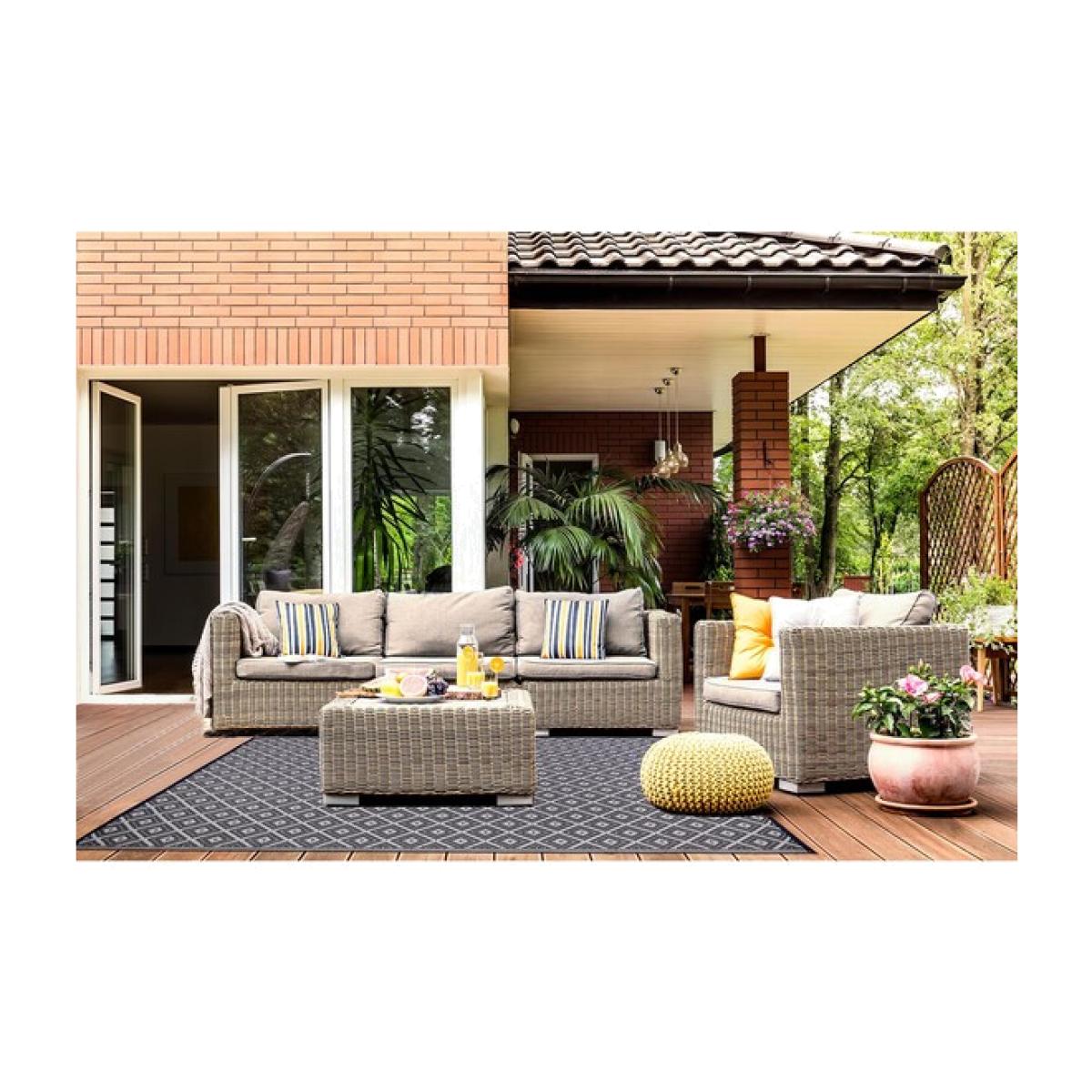Large in size and made from waterproof material, the Geo Outdoor Rug is a wonderful way to add a splash of style to your patio or decking. Coloured a modern grey, it features a snazzy geometric pattern that will catch the eye and compliment your outside decor.