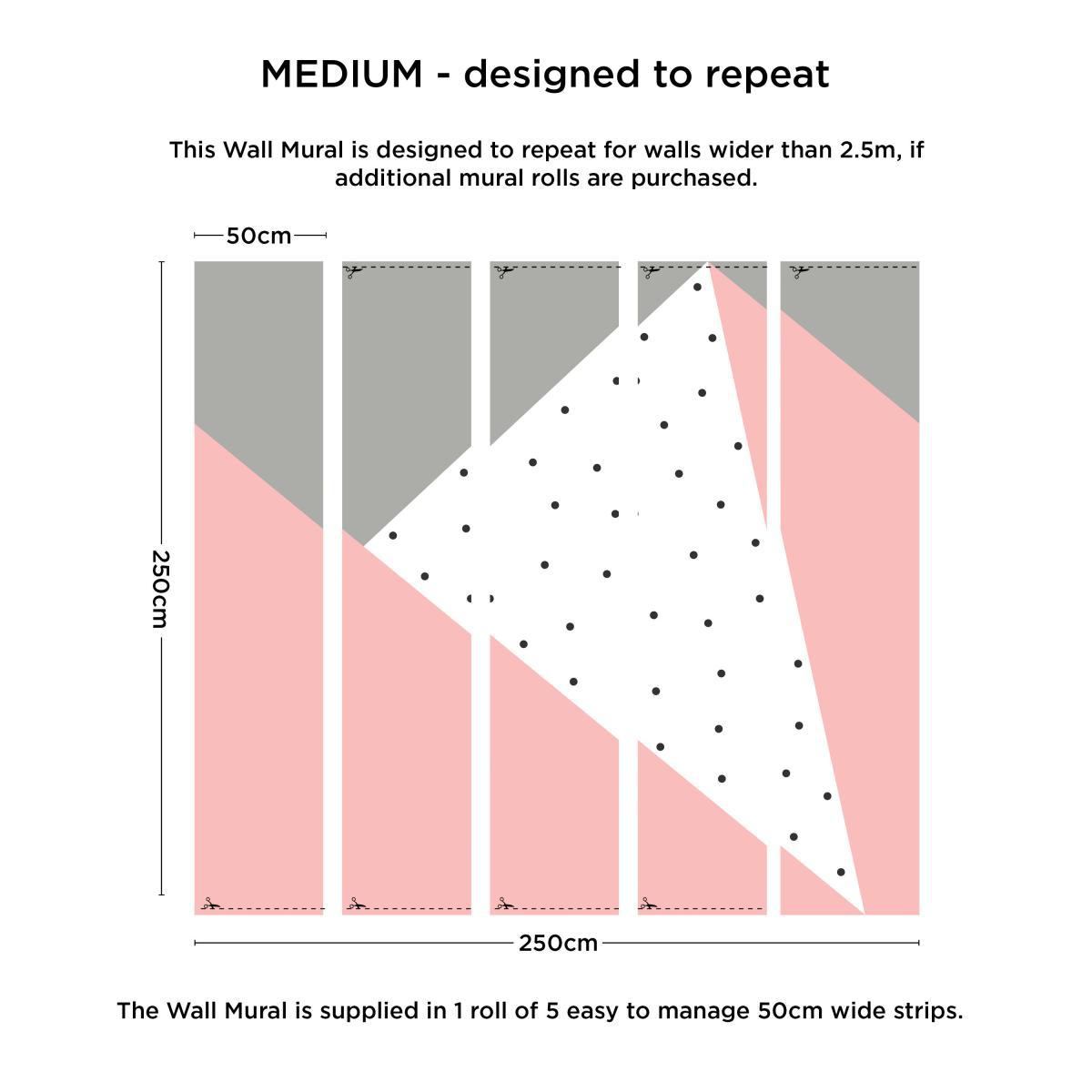 * Geometric inspired design* Easy to hang* Paste the wall method* Mess free and time saving* Wipe clean Perfect for adding a modern feature wall to your home décor, this geometric inspired mural is available across two colourways. Easy to hang, you are required to paste the wall and apply the paper. This application method is time saving compared to traditional wallpapering methods. This mural has been designed to repeat for walls wider than 3m if additional rolls are purchased.