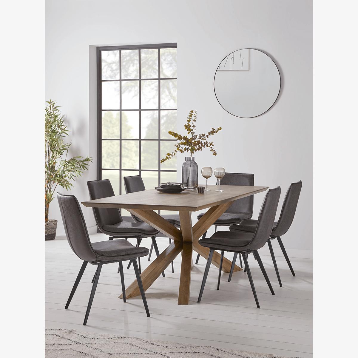 Perfectly embodying our Industrial Loft trend with its solid oak construction and metal furnishings, our range of Geo Rustic Oak furniture is sure to enhance and make an impression in your living and dining area. The range of items available in this style means you can create a cohesive look in open plan spaces or across a number of rooms. Our Geo Rustic Oak Dining table has a lustrous mid-toned colouring and unusual legs set in a star-like formation. It allows plenty space for six to dine in comfort.