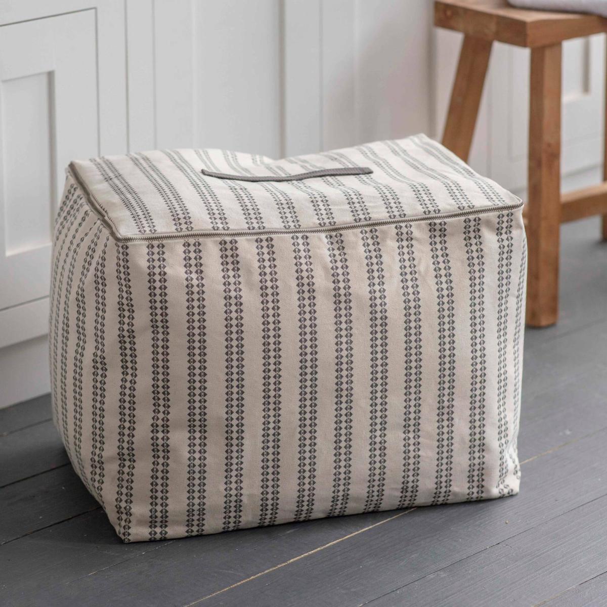 Made from sturdy cotton canvas with a subtle geo striped print, this generously large storage bag can fit a king size duvet inside and features a zip lid so your home can remain clutter free throughout the seasons.