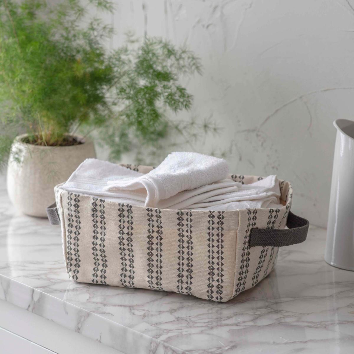 Store freshly laundered towels or bathroom essentials in this geometric striped basket. Made from canvas, it's perfect for keeping cupboard and wardrobe spaces neat and tidy.