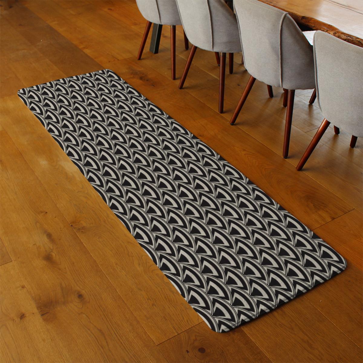 I love this geometric arches runner rug for adding a contemporary touch to hallways or narrow spaces. Its bold black and neutral design works particularly well in modern or monochrome interiors, but it can also provide a striking contrast in more eclectic or minimalist settings. Practical styling tips include pairing it with sleek furniture and metallic accents to enhance its graphic pattern, and layering it with other textures like wool throws or velvet cushions for added depth. It’s durable enough for high-traffic areas, making it both stylish and functional, and its slim profile ensures it fits well in tight spots without overwhelming the space.