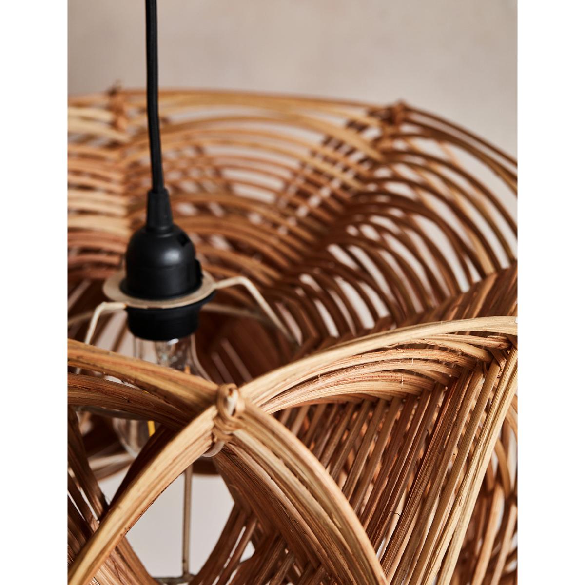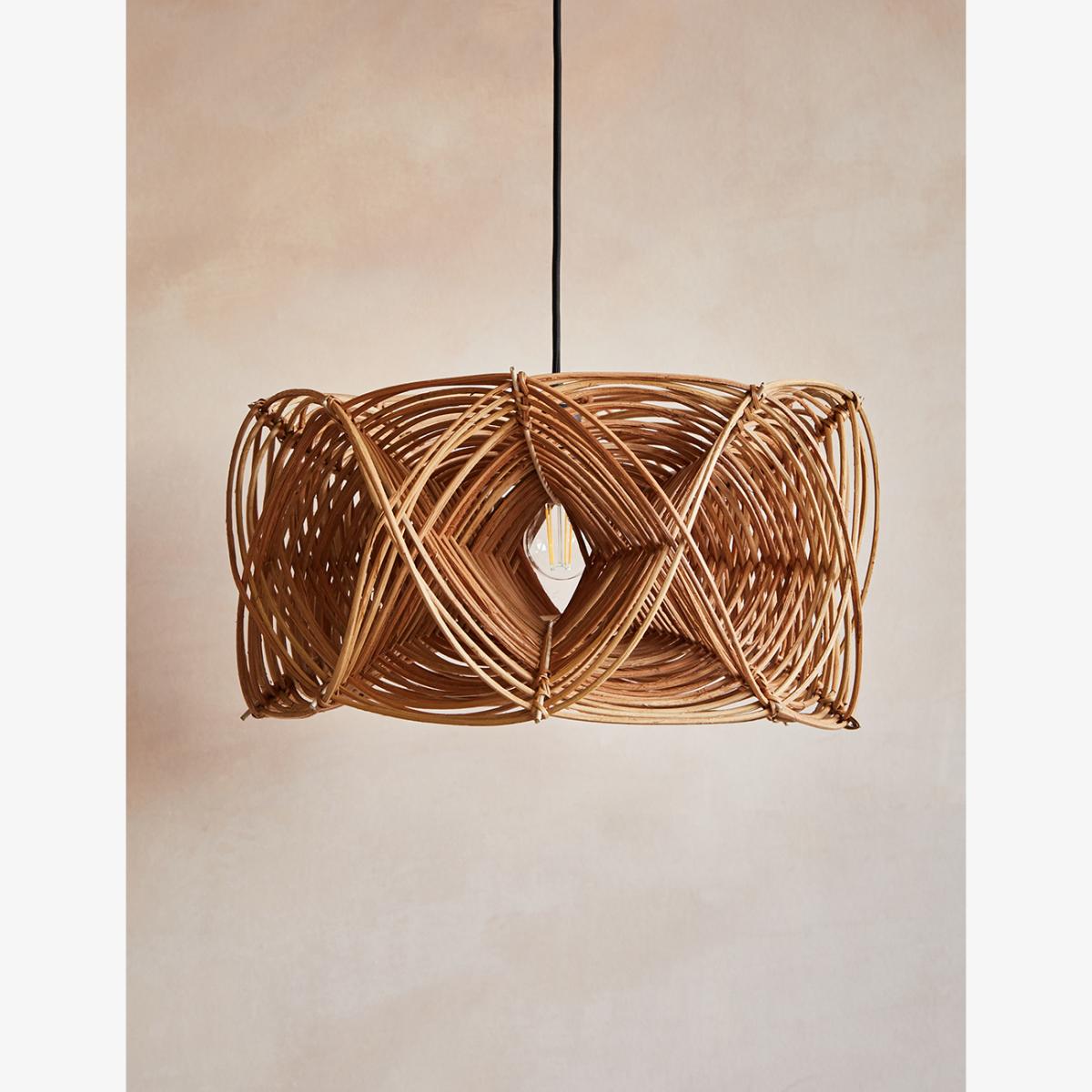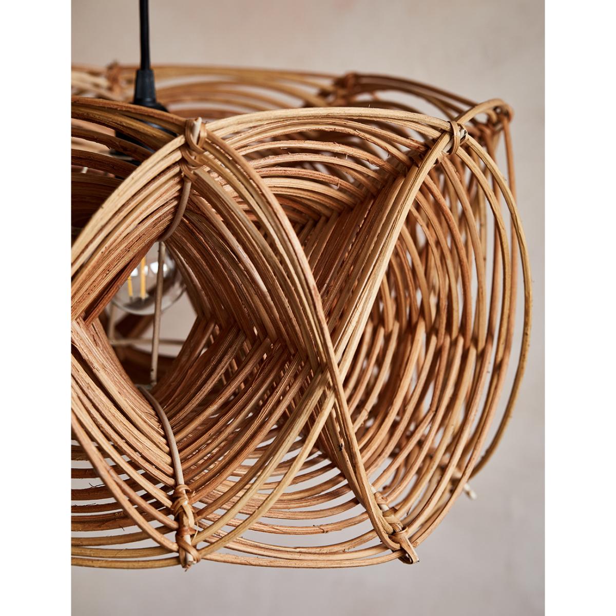 Transform your home lighting and create an ambient setting with our Geometric Detail Rattan Ceiling Lamp. Featuring a rounded body with cross detailing, this large pendant ceiling lamp has layers of natural rattan that add depth and texture to the room. Think industrial-style lighting meets boho lighting. This statement ceiling lamp is entirely versatile and looks great as a bedroom light, office lighting or living room lighting.