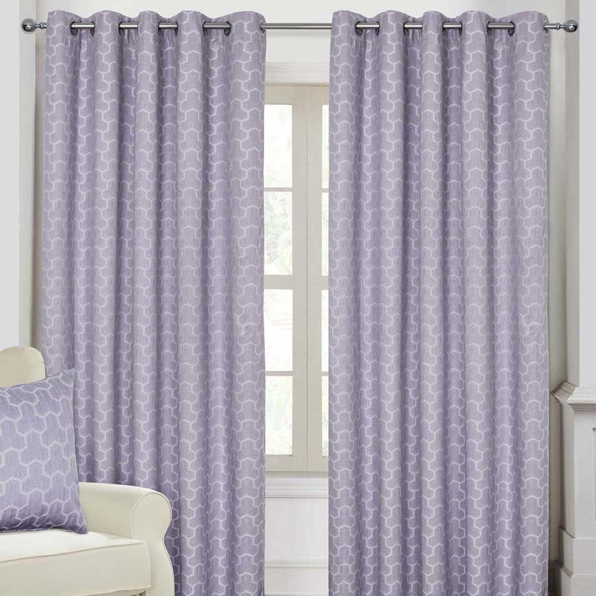 Geometric readymade curtain pair from Homescapes available in a choice of sizes. Add style and edge to your windows with these geometric patterned curtains in a soft blue colour, perfect for the bedroom or living room. Woven from jacquard polyester, these curtains will drape beautifully from an eyelet header that makes hanging quick and easy. For true blackout, these curtains have a 3-pass coating to ensure that any outside light is blocked out from your room making these curtains ideal for shift workers or for those who prefer to sleep in complete darkness. These thick curtains also work as insulators by keeping heat inside your home helping to save on energy bills. Matching blue geometric cushions are also available to buy separately from Homescapes. We recommend washing at 30 degrees and ironing on a cool setting.