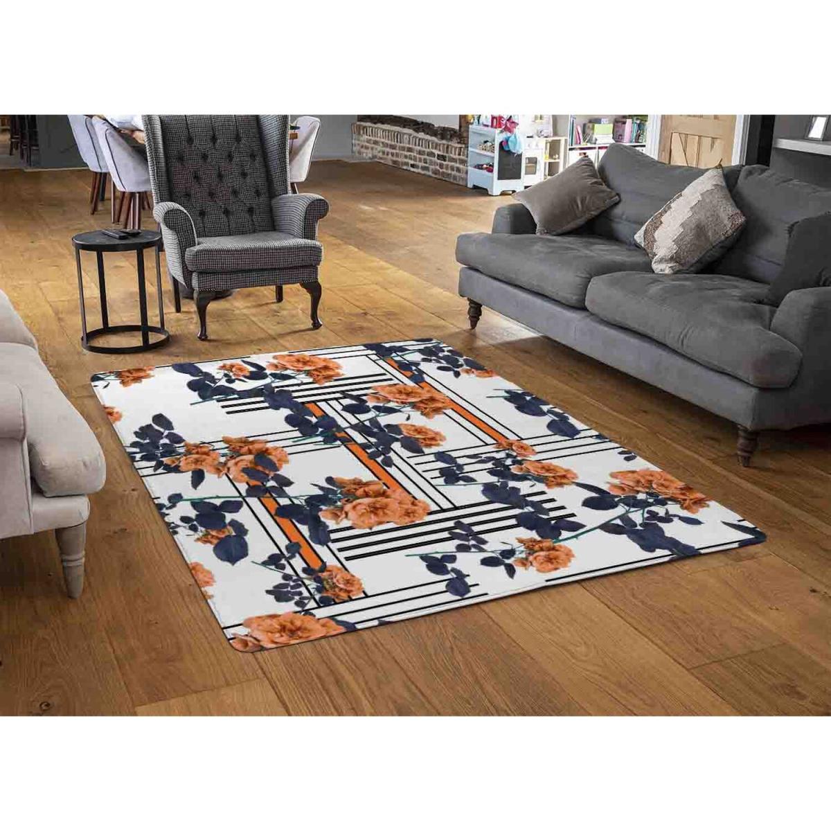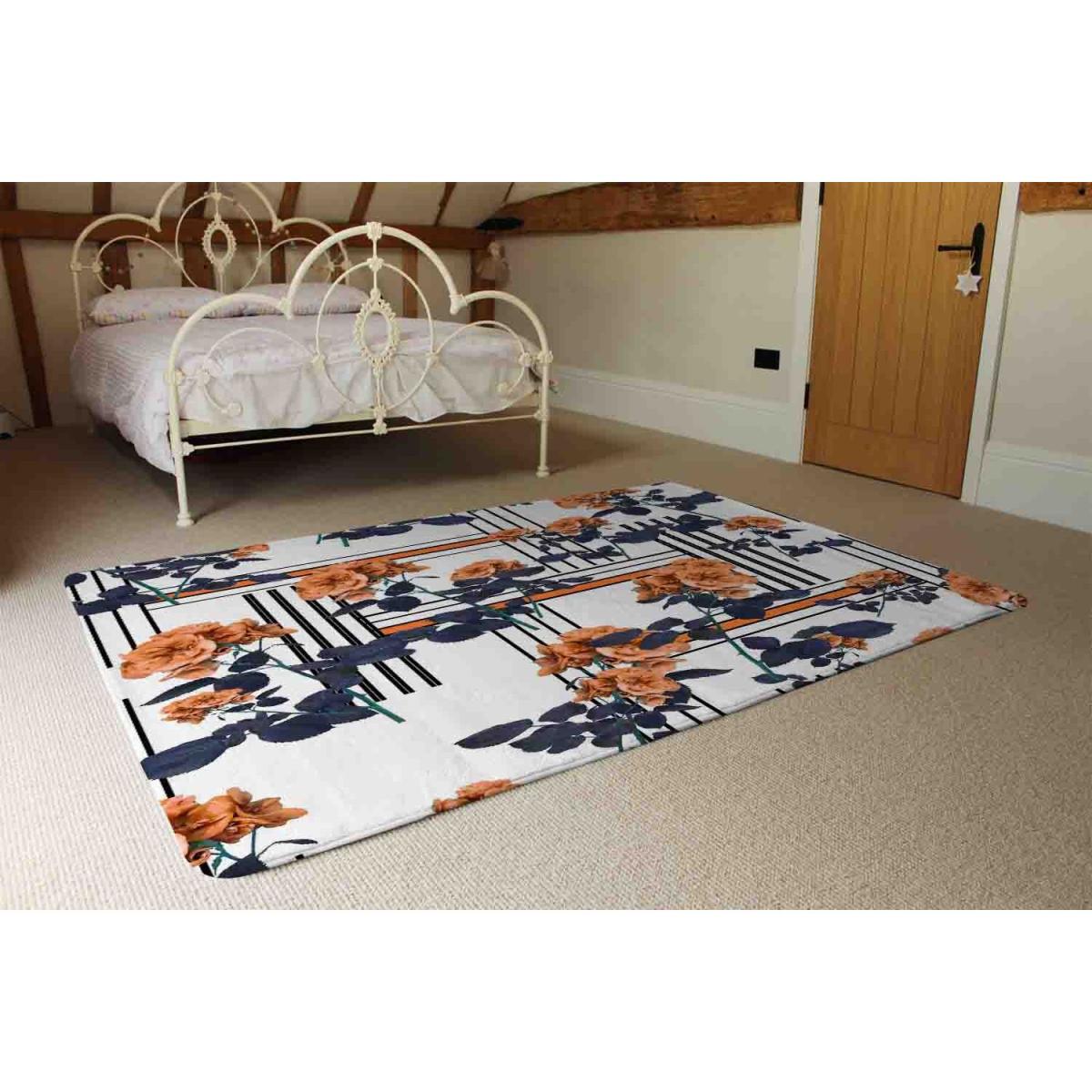I love this geometric lines flower rug for adding a touch of colour and pattern to contemporary interiors. Its vibrant orange base makes it a great statement piece, especially in neutral or minimalist spaces where it can bring warmth and visual interest. It works well in living rooms, bedrooms, or even as a colourful unexpected addition to a home office. For styling tips, consider pairing it with simple, solid-coloured furniture to let the rug stand out, or coordinate with other accessories in shades of navy or black for a cohesive look. Because it’s artificial, it’s low-maintenance and ideal for busy households or places where real flowers might not last. Overall, it’s a versatile piece that adds personality and a splash of colour while remaining easy to care for.