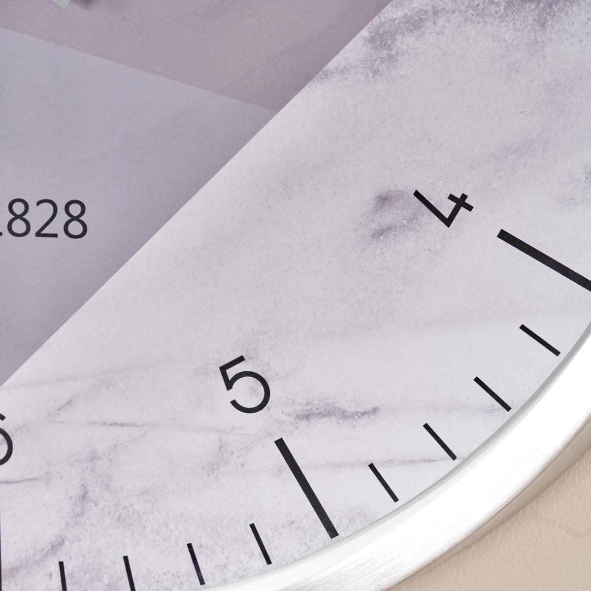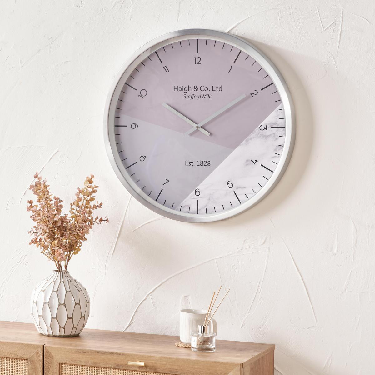 * Stylish marble-effect design * Geometric pastel shade print * Simple, contemporary numerals * Battery operated (AA, not included) * Available in black or silver Make a contemporary style statement with this wall clock, featuring a marble-effect design and geometric pastel shaded print for a modern touch. The minimalist numerals keep the look clean and modern, making it a stylish addition to any space. Available in black or silver, it complements a range of interiors, from sophisticated monochrome to bold, modern schemes. Battery-operated for easy placement (AA, not included), it brings both function and flair to your walls. Perfect for kitchens, living rooms or home offices, it’s a timeless piece that blends practicality with effortless style.