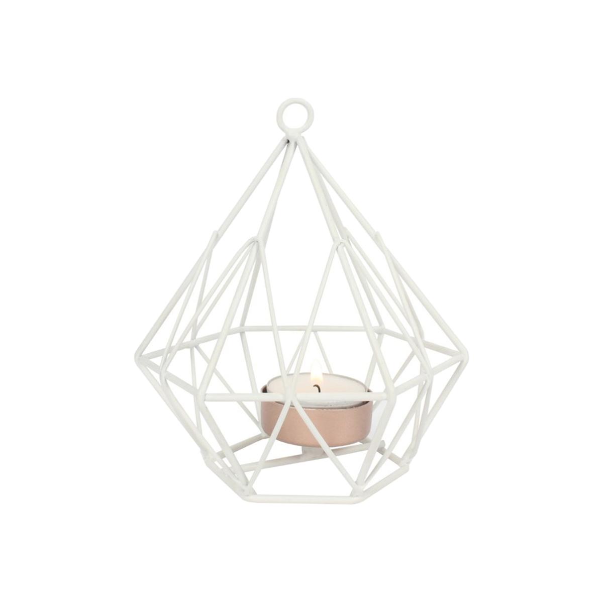 Geometric white metal tealight holder. Tealight not included. Part of the Live Colourfully range.