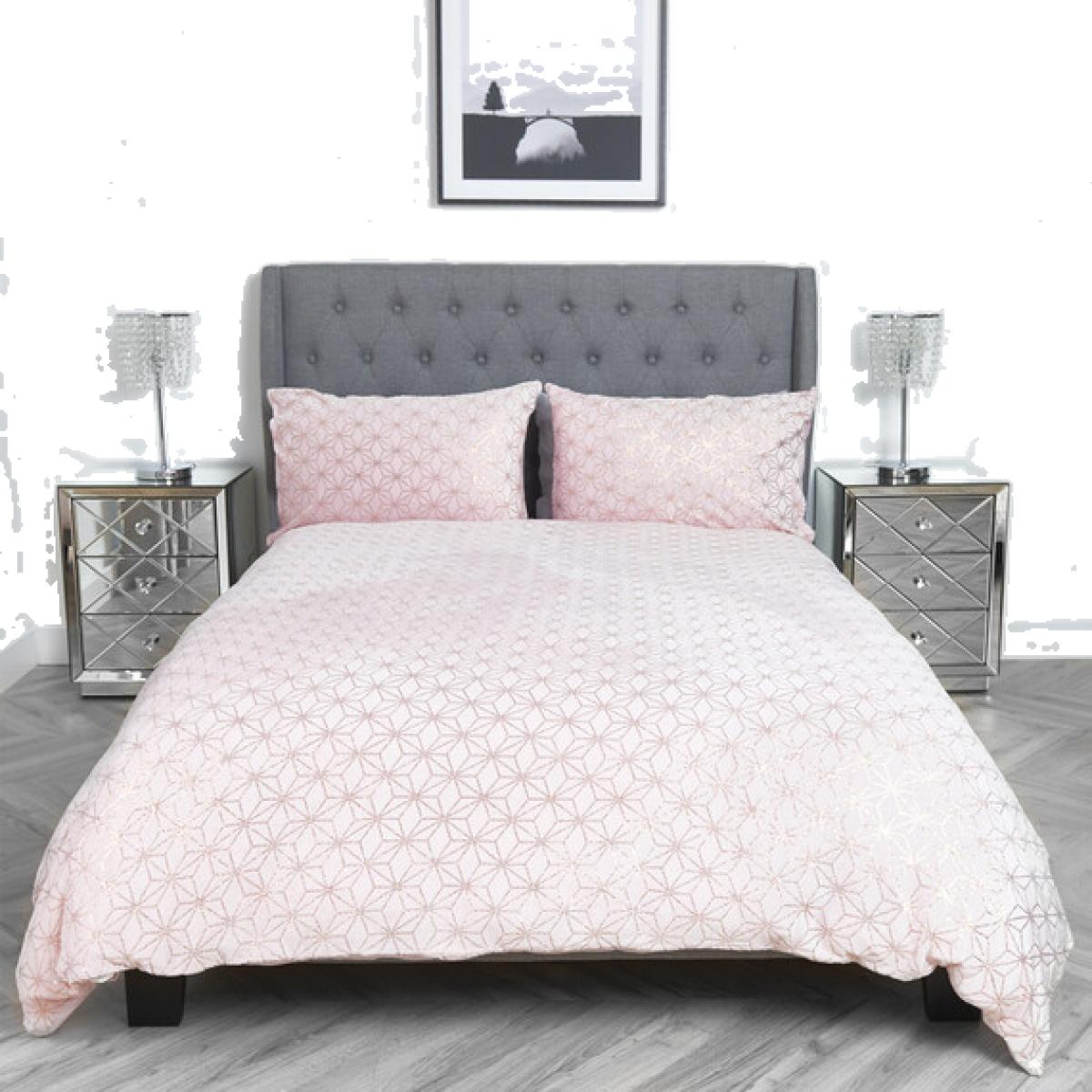 Geometric Metallic Fleece Duvet and Pillow Case Set - Rose