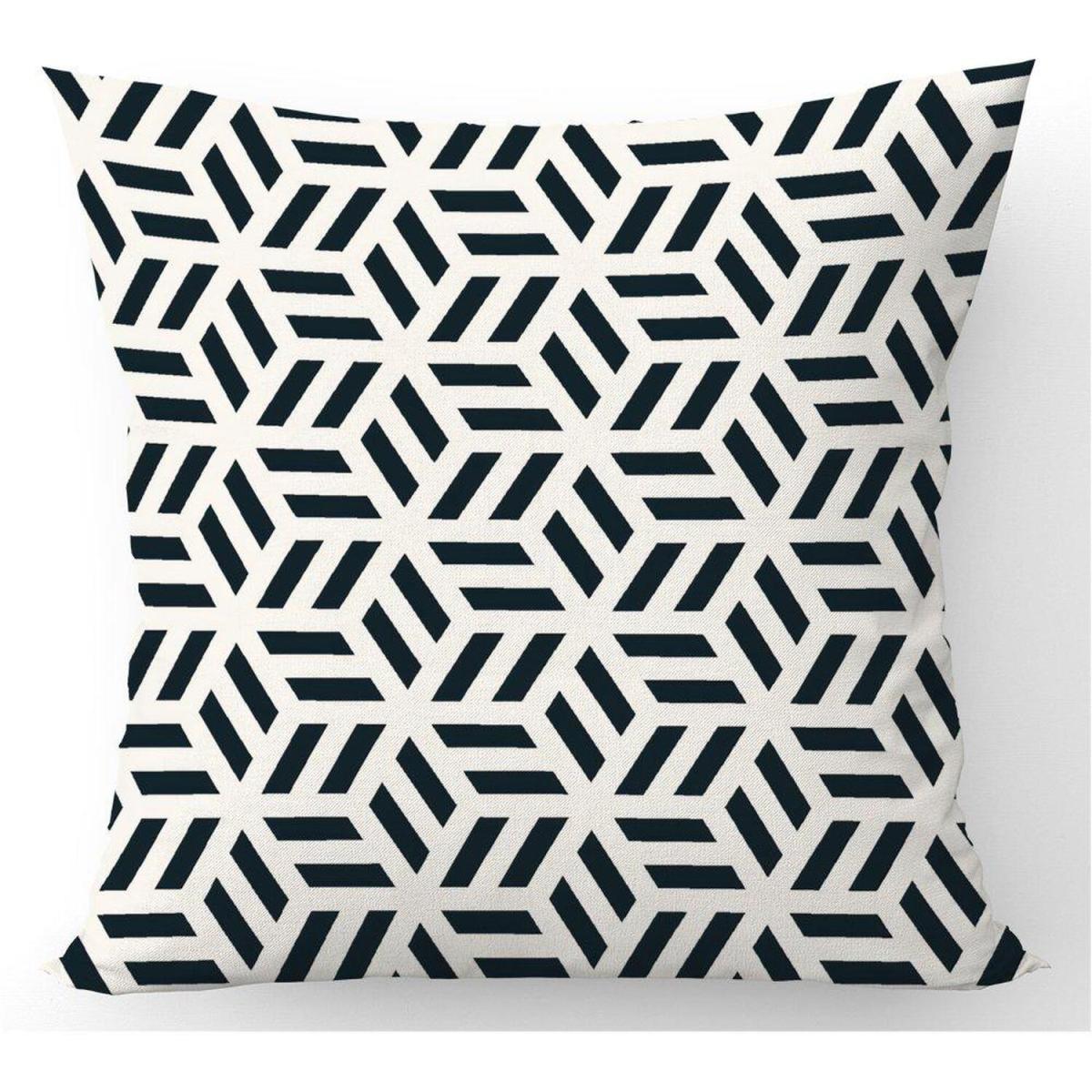 Geometric Monochrome Hexagonal Pattern Cushion - Black / 45cm