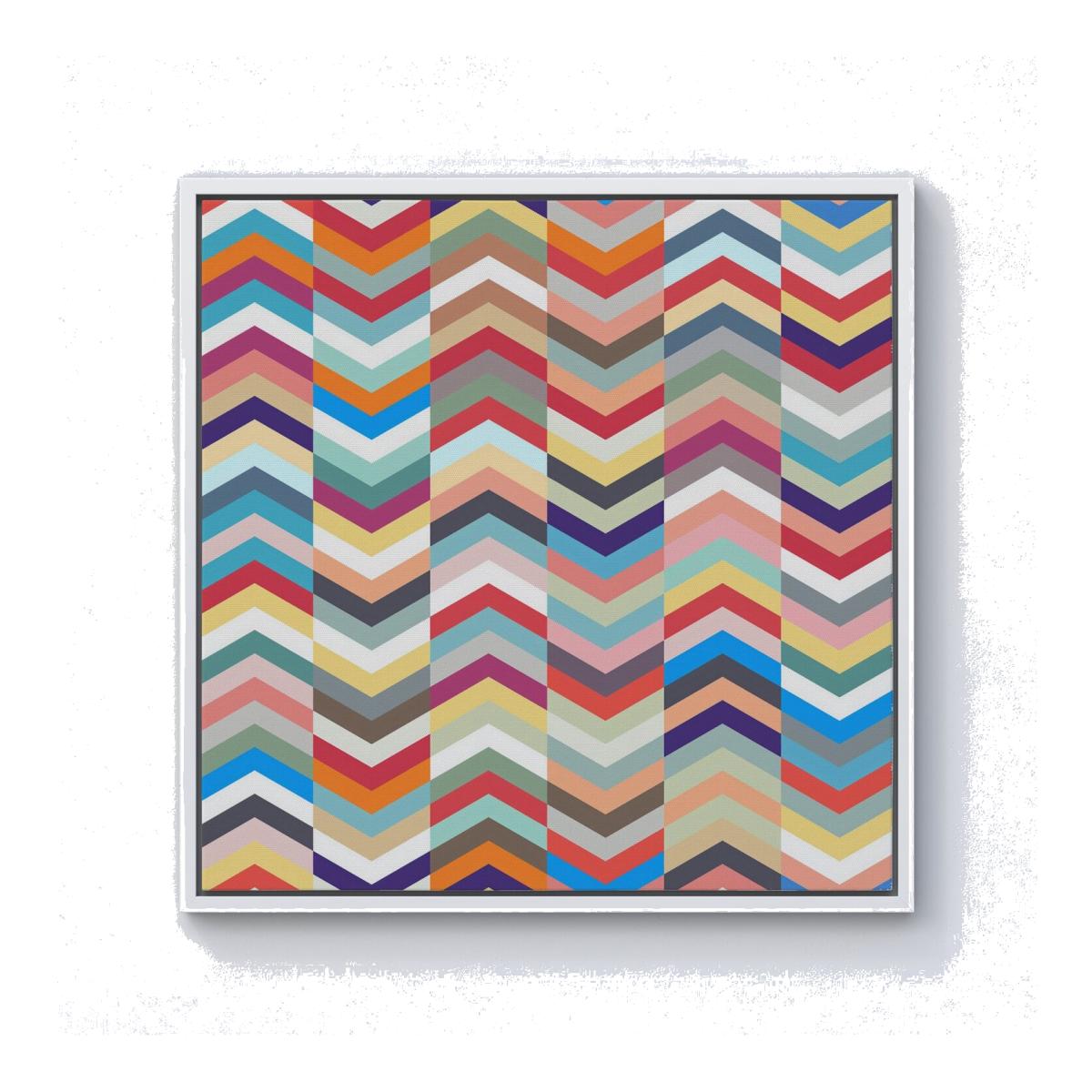 Geometric Multi Colored Chevron Pattern Canvas Print - Red / 76.2cm / White Frame