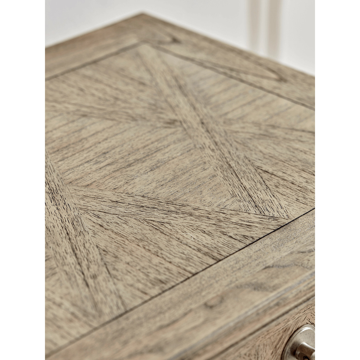 I’m a fan of this parquet chest for its subtle geometric inlay and muted oak wash - it brings texture without overwhelming a scheme. It sits just as well in a Scandi-inspired bedroom as it does in a relaxed coastal hallway, and its compact footprint means it won’t swamp smaller rooms. For styling, keep the top clutter-free: a round mirror or piece of simple artwork leaning behind a sculptural vase and a small stack of books is all you need. Pair with soft linens, muted rugs and matte-black or brass accents to let the parquet detail really sing.