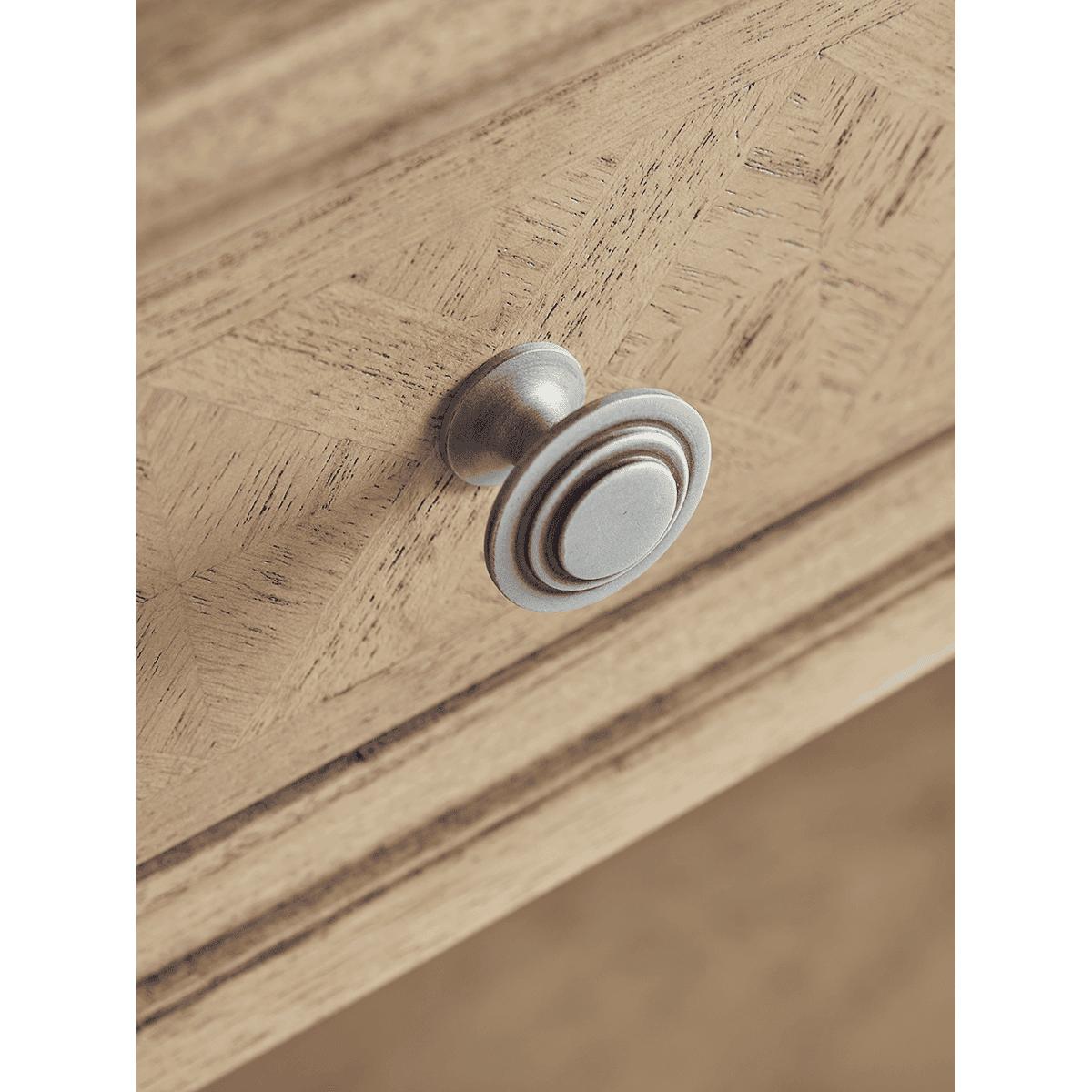 I’m really taken with this parquet console - its clean-lined silhouette and subtle wood-block top make it a versatile choice for contemporary, Scandi or modern farmhouse schemes. The natural oak finish softens greys and whites, while the turned legs and lower shelf add just enough detail to feel intentional, not fussy. For a hall or behind the sofa, pair it with a large mirror to bounce light, place a sculptural lamp on one side and layer a couple of coffee-table books with a small plant or ceramic pot on the other. Keep accessories in threes and leave some negative space on the shelf below for baskets or low-profile storage.