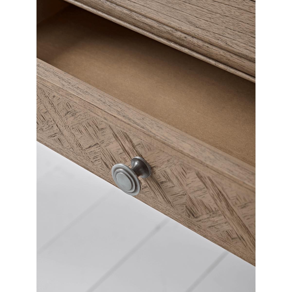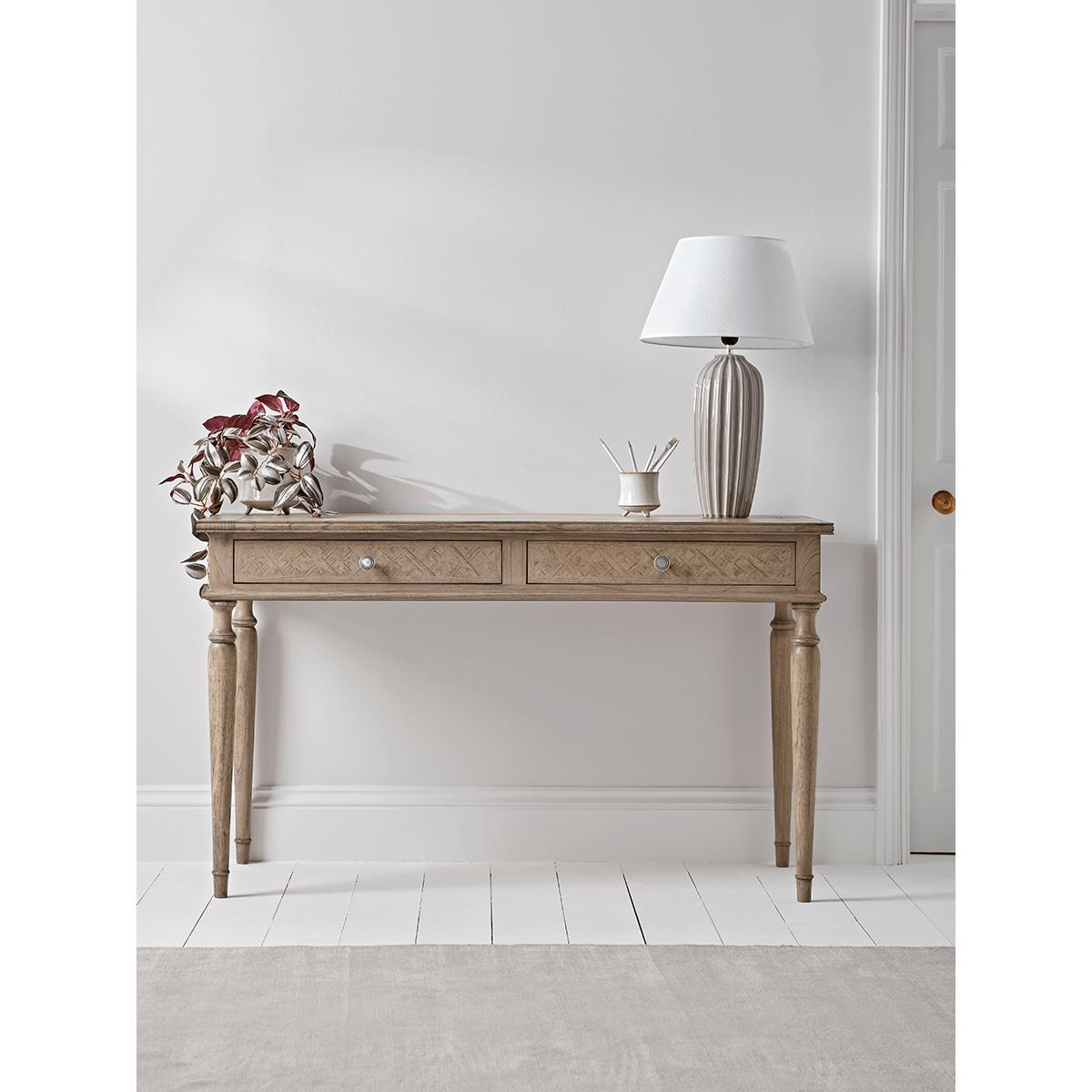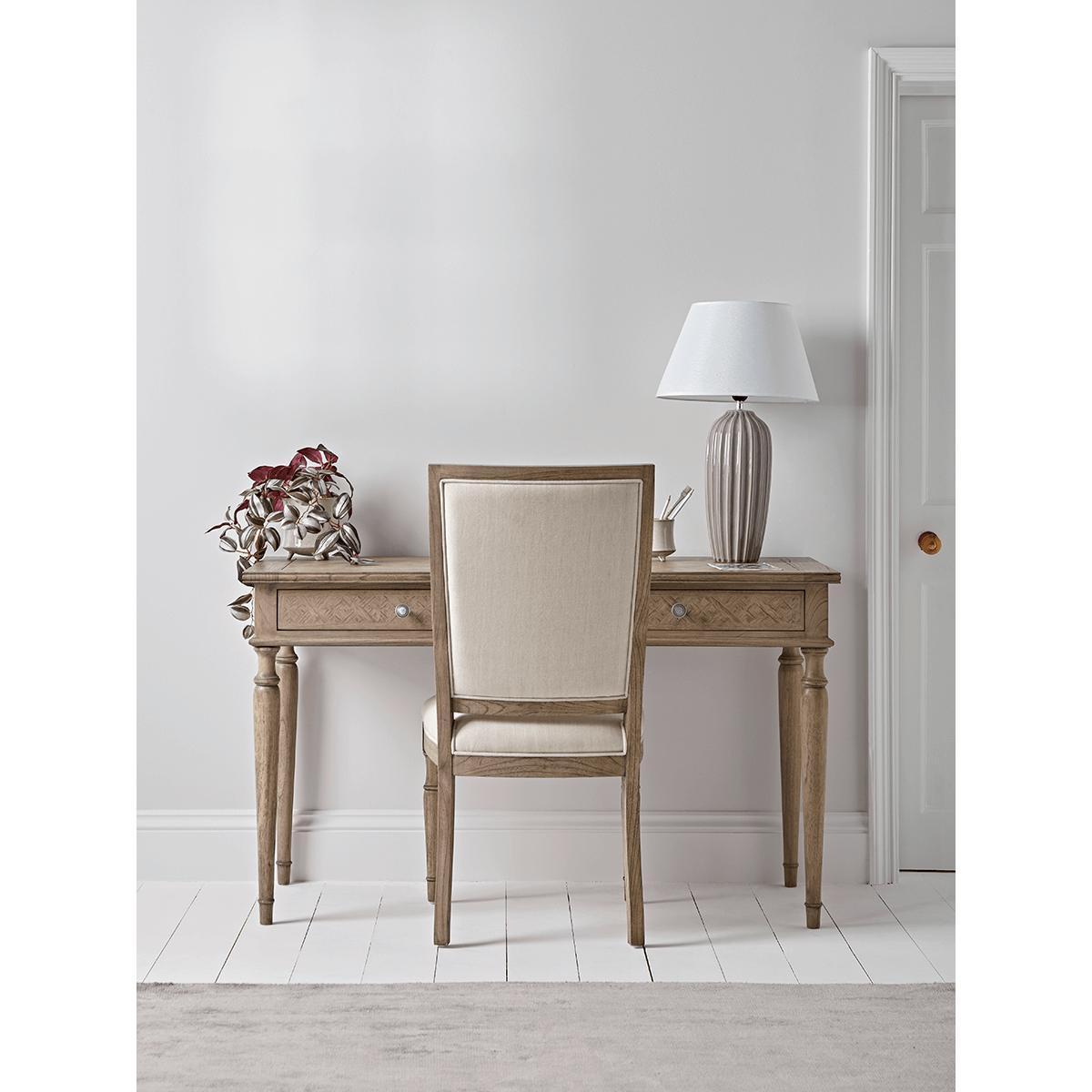 I love the parquet desk for its clean lines and subtle geometric top - it brings quiet interest without overwhelming a room. It sits beautifully in Scandi, modern country or muted-contemporary schemes, the neutral oak finish layering easily with greys, whites and soft pastels. Stylist tip: keep the surface minimal with a low-profile lamp, a small plant and a neat tray to corral stationery, while the central drawer hides loose bits. Anchor it with a natural-fibre rug and pair with a simple upholstered chair in a complementary shade. For extra storage, consider matching wall-mounted shelves above to maintain a streamlined look.