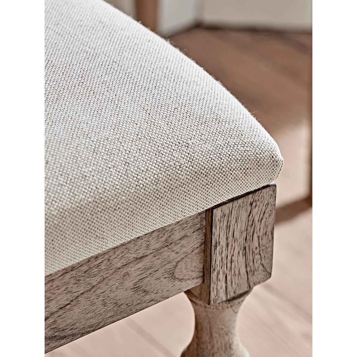 The mindi wood of our Geometric Parquet Dressing Table Stool has a gently brushed finish to give it a coastal feel. An elegant stool with an upholstered cream seat and slender turned wood legs to perfectly pair with our. Geometric Parquet Dressing Table.