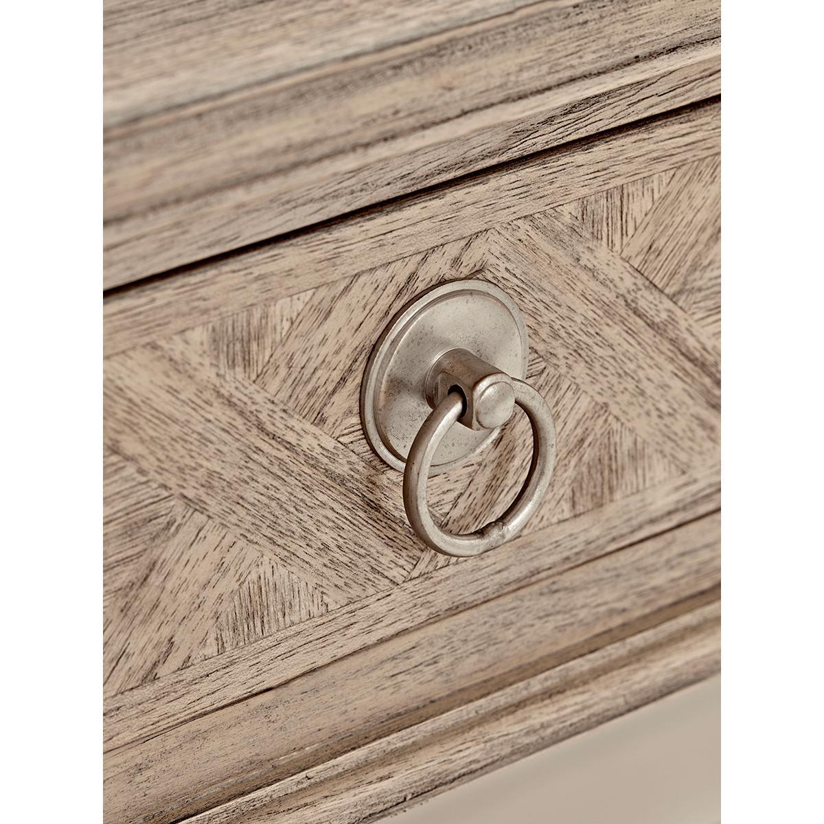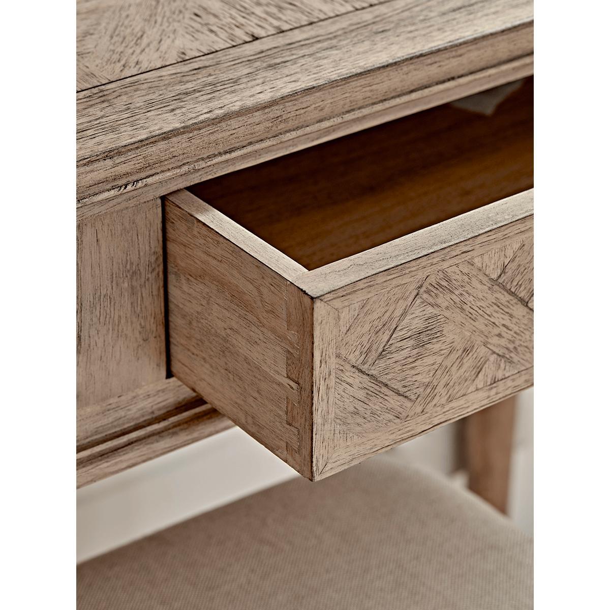 The mindi wood of our Geometric Parquet Dressing Table has a gently brushed finish to give it a coastal feel. A piece of furniture that, with its geometric design, has an elegant, almost stately quality. Traditional ring pull hardware and decorative turned wood legs finish the decorative elements of the dressing table. To shop our look and pair to our matching pieces, please see our. Geometric Parquet Dressing Stool. And. Geometric Parquet Dressing Table Mirror.