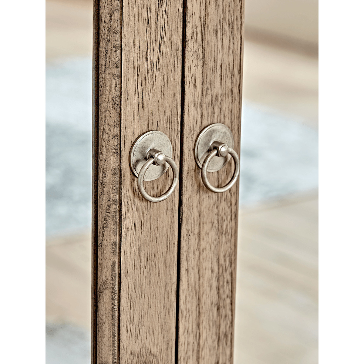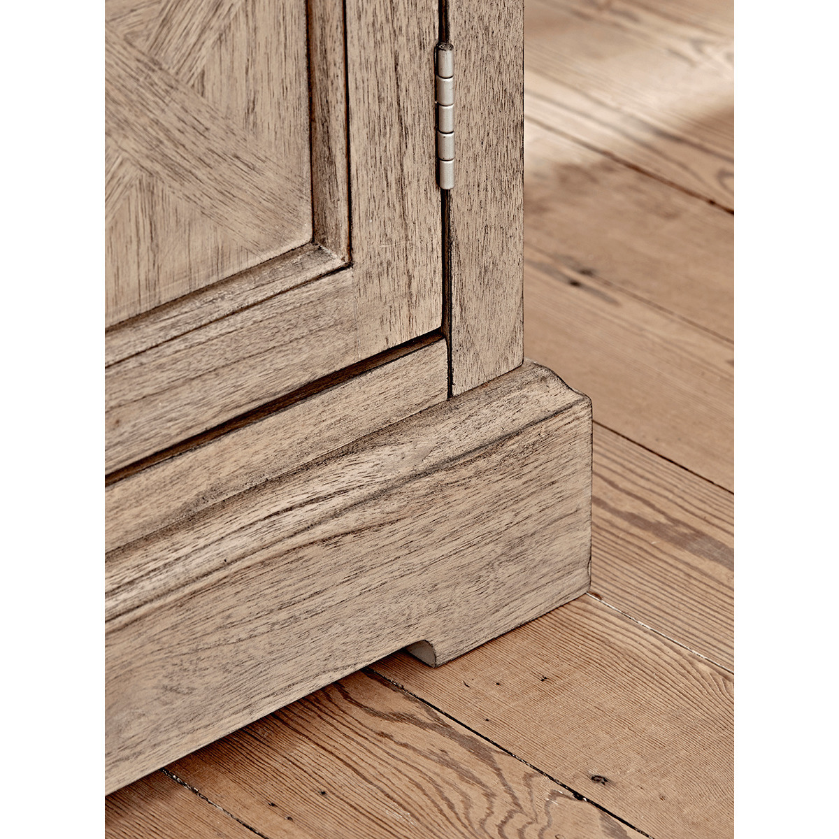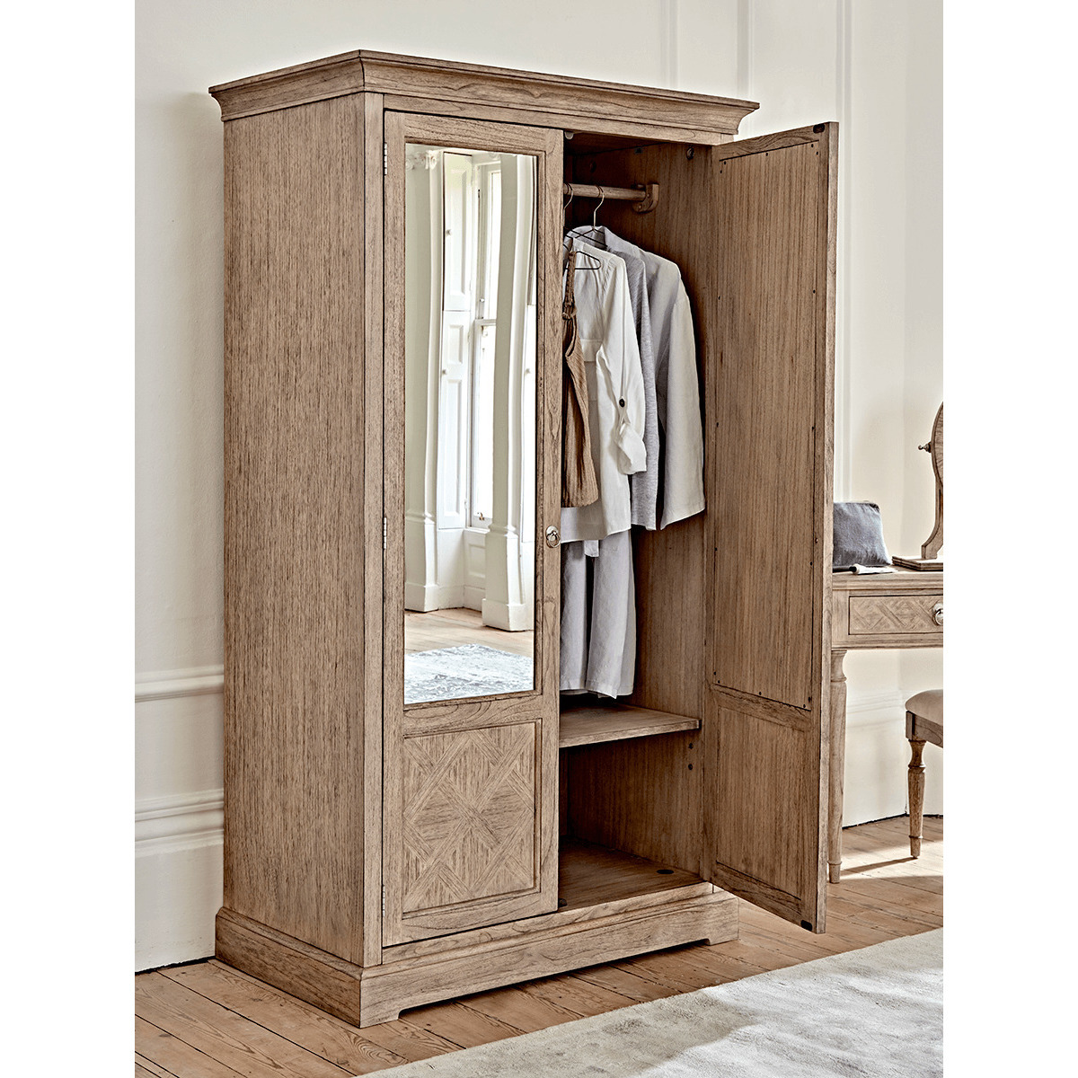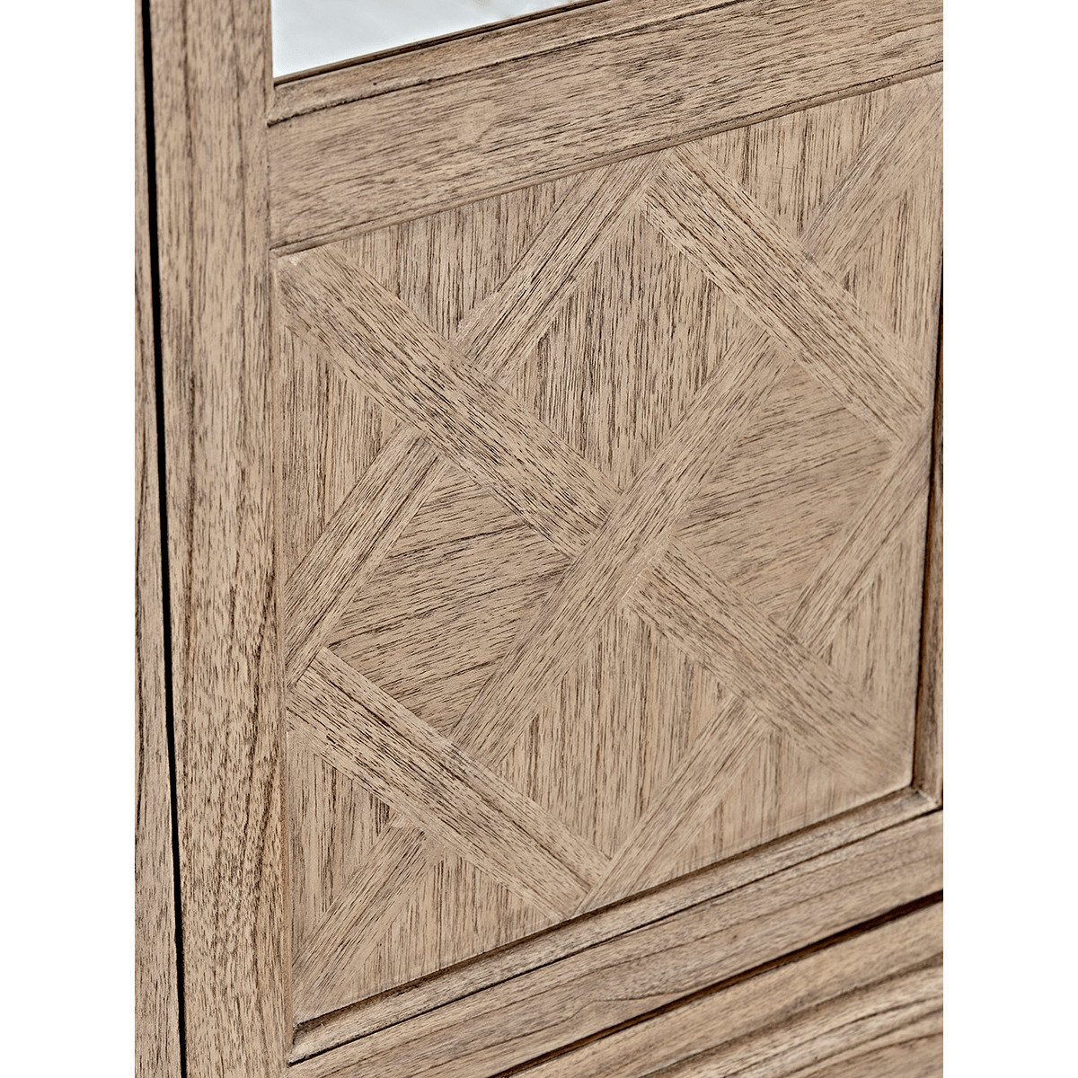 The mindi wood of our Geometric Parquet Wardrobe has a gently brushed finish to give it a coastal feel. A piece of furniture that, with its geometric design, has an elegant, almost stately quality. A traditional plinth top and base and framed mirrored doors finish the decorative element. For other pieces in this range, please see our. Geometric Parquet Collection.