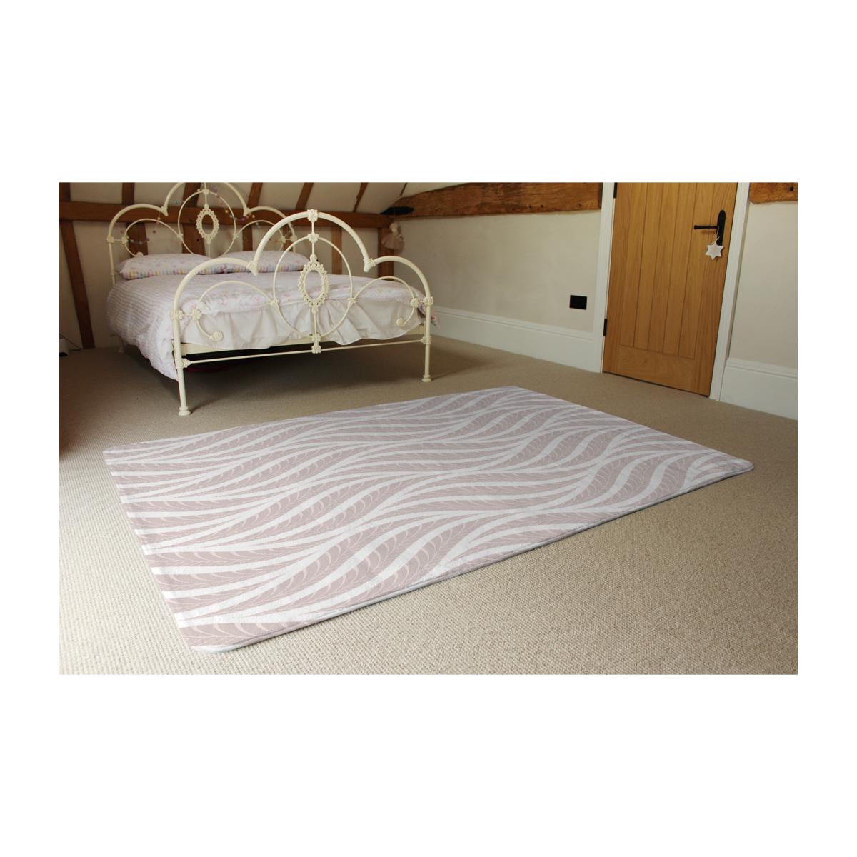 I love this pink leaf and geometric rug for its modern yet soft aesthetic, making it a versatile piece in both contemporary and eclectic interiors. Its lively pattern and colour add visual interest without overwhelming the space, making it perfect for bedrooms, living rooms, or even a chic home office. When styling, consider pairing it with neutral furniture to let the pattern stand out, or coordinate with blush and pastel accents for a cohesive look. Practical tips include layering with smaller cushions or throws in coordinating shades, and ensuring it’s placed on a flat, low-pile carpet or hardwood for stability. Its size also makes it an ideal choice to anchor a seating area or bed, adding warmth and personality to the room.