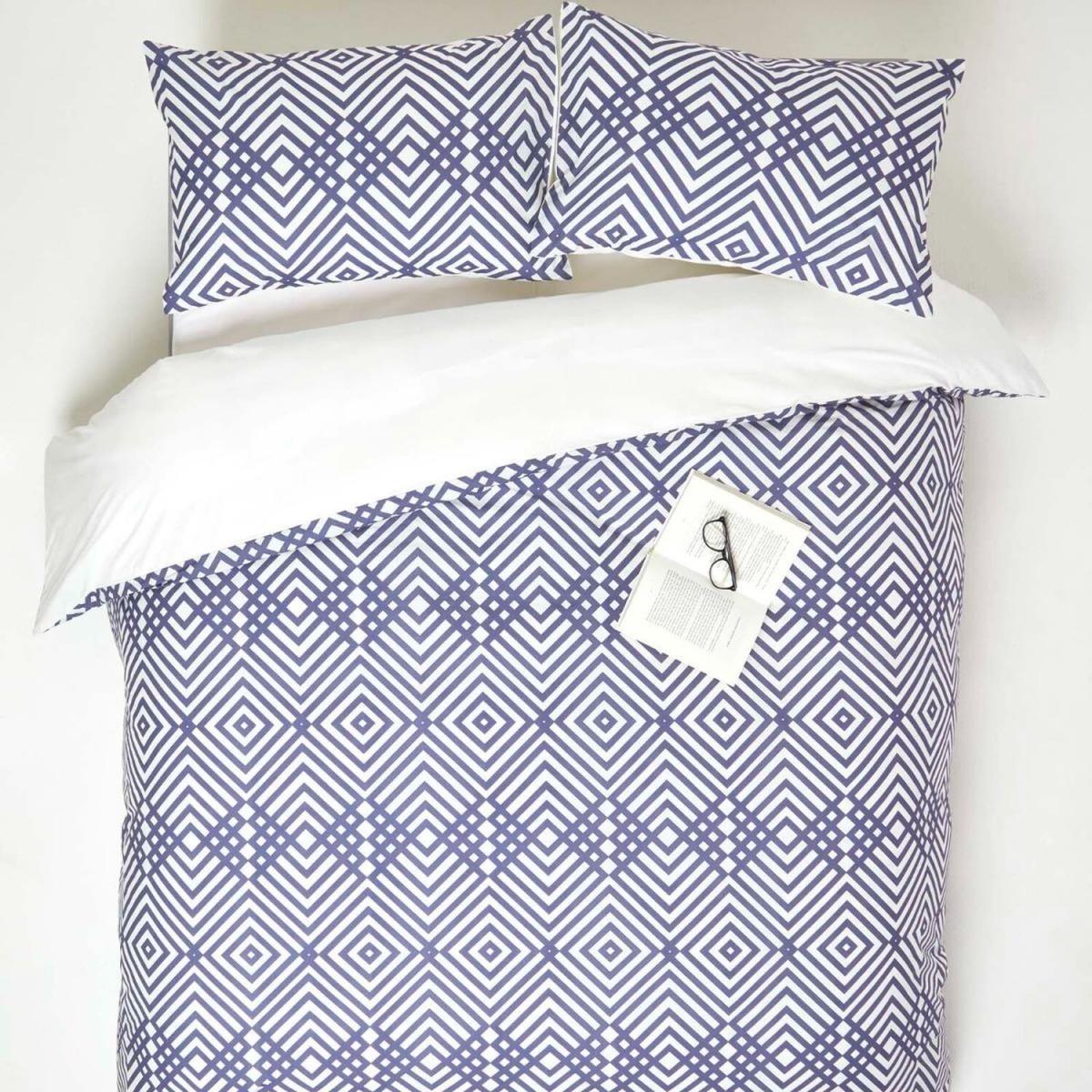 Introduce a splash of colour to your bedroom interior with Homescapes patterned bed linen. This percale cotton duvet cover features an on-trend geometric design set on a white background. This contemporary geometric design will compliment white and colourful style bedrooms. Woven from durable 200 thread count (400 equiv) 100 cotton this strong and durable duvet cover is designed to last and will become softer over time. Digitally printed to ensure lasting vibrant colour, this striking pattern has been exclusively designed by Homescapes and is a limited edition run. Bed sheets quick and easy, featuring a quick zip closure and the pillowcases have a standard envelope close for a neat look. Available as a single set (including one pillowcase), as well as a double, king and super king size (includes two pillowcases). Don't forget to complete the look with our co-ordinating collection of blue and white, flat and fitted sheets available in a range of thread counts.