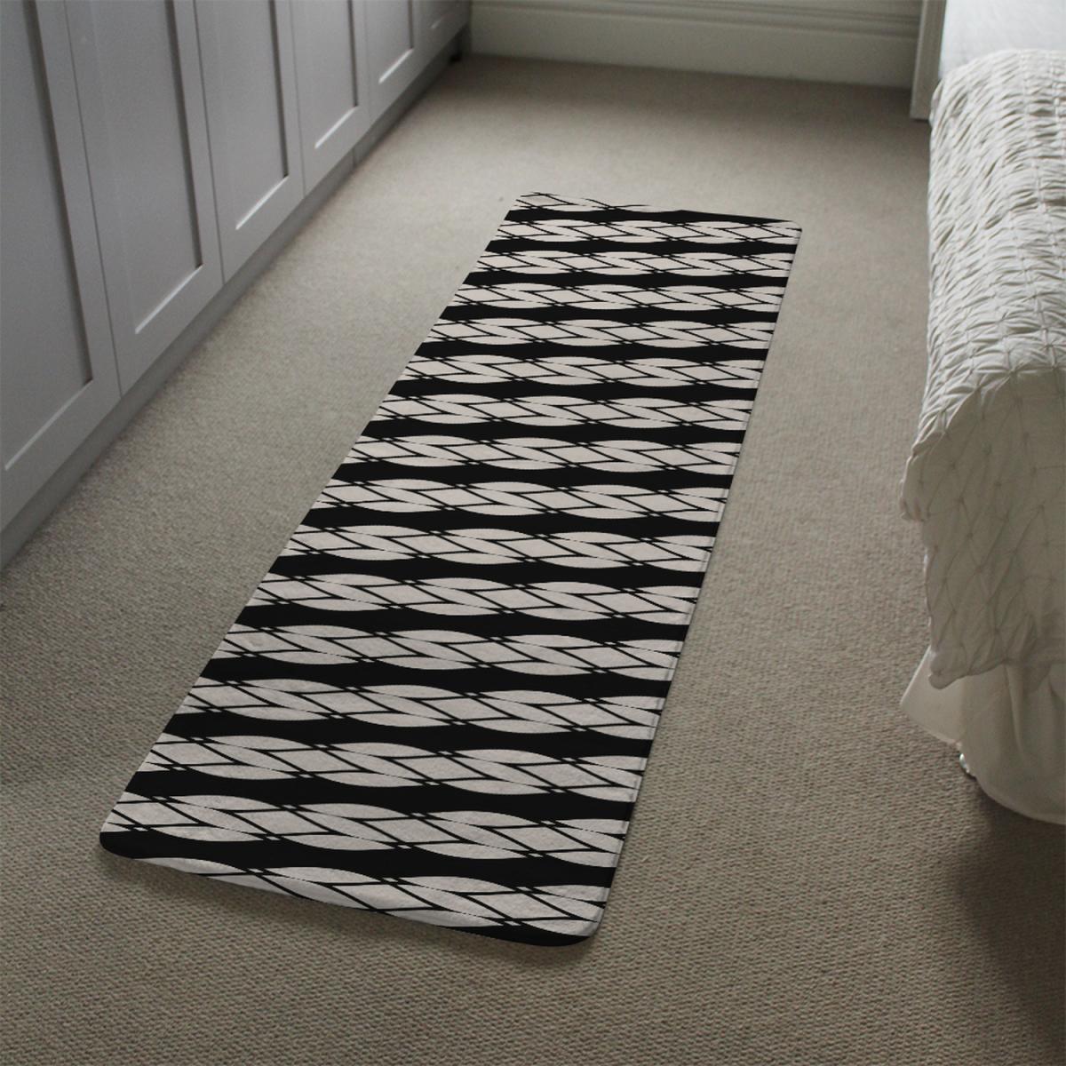I really like this one because its geometric rope pattern adds a modern, graphic element to your space without overwhelming it. It’s versatile enough to work well in both contemporary and transitional interiors, especially in hallways or along corridors where a bold runner can create a focal point. Practical styling tips include pairing it with minimalist furniture to let the pattern stand out, or mixing it with monochrome accessories for a cohesive look. Its black and white colour scheme makes it easy to incorporate into various colour palettes, and it’s great for adding a touch of visual interest while maintaining a clean, streamlined aesthetic.