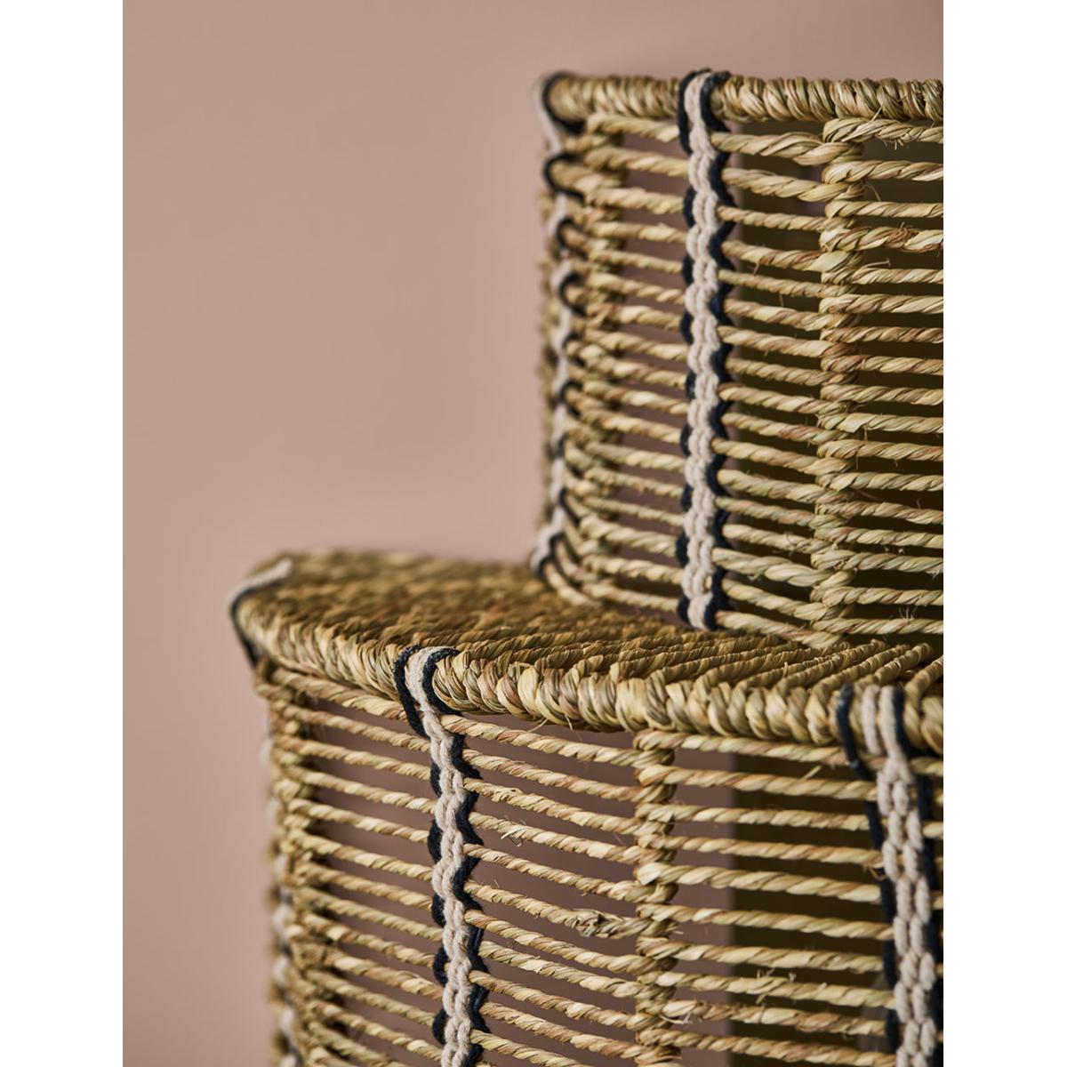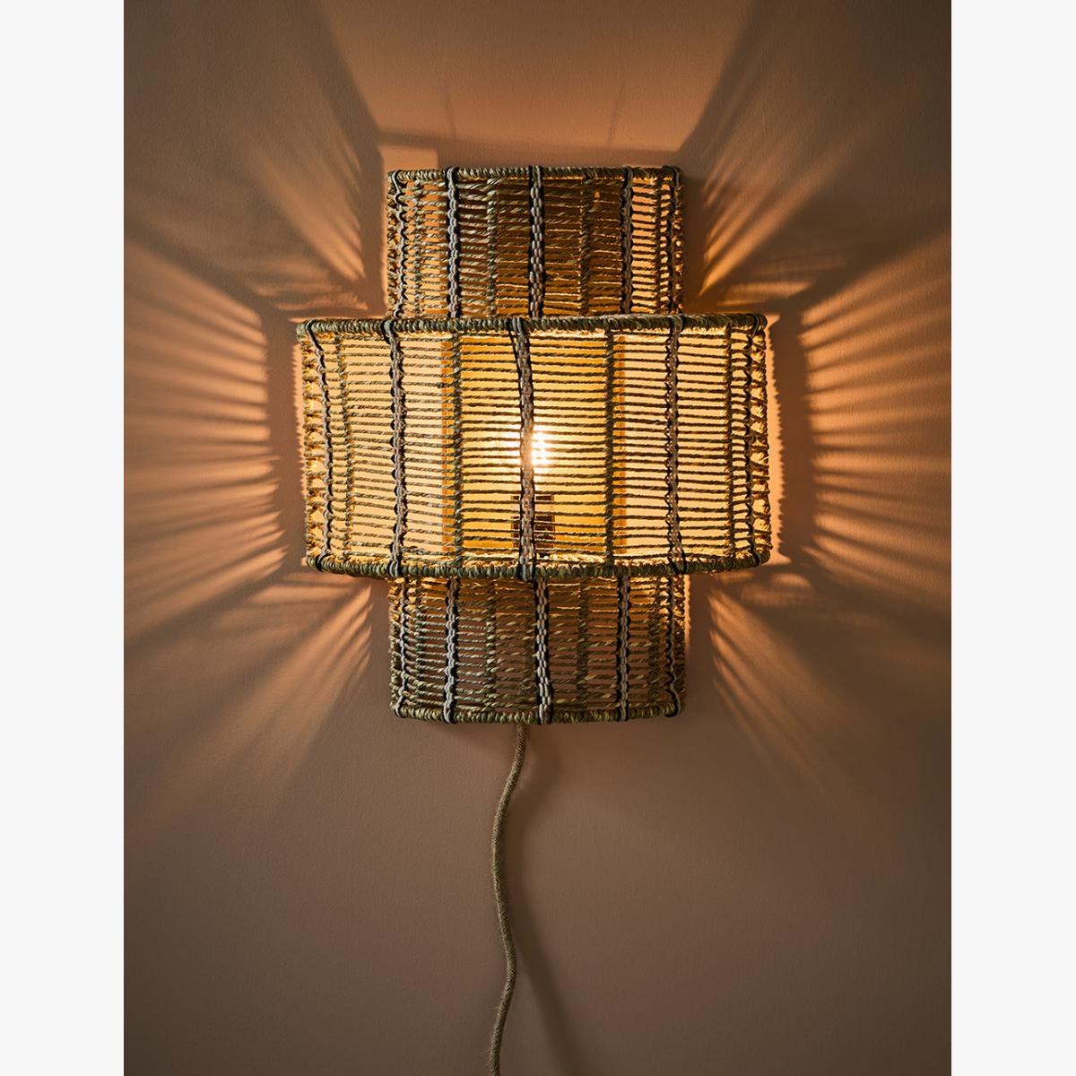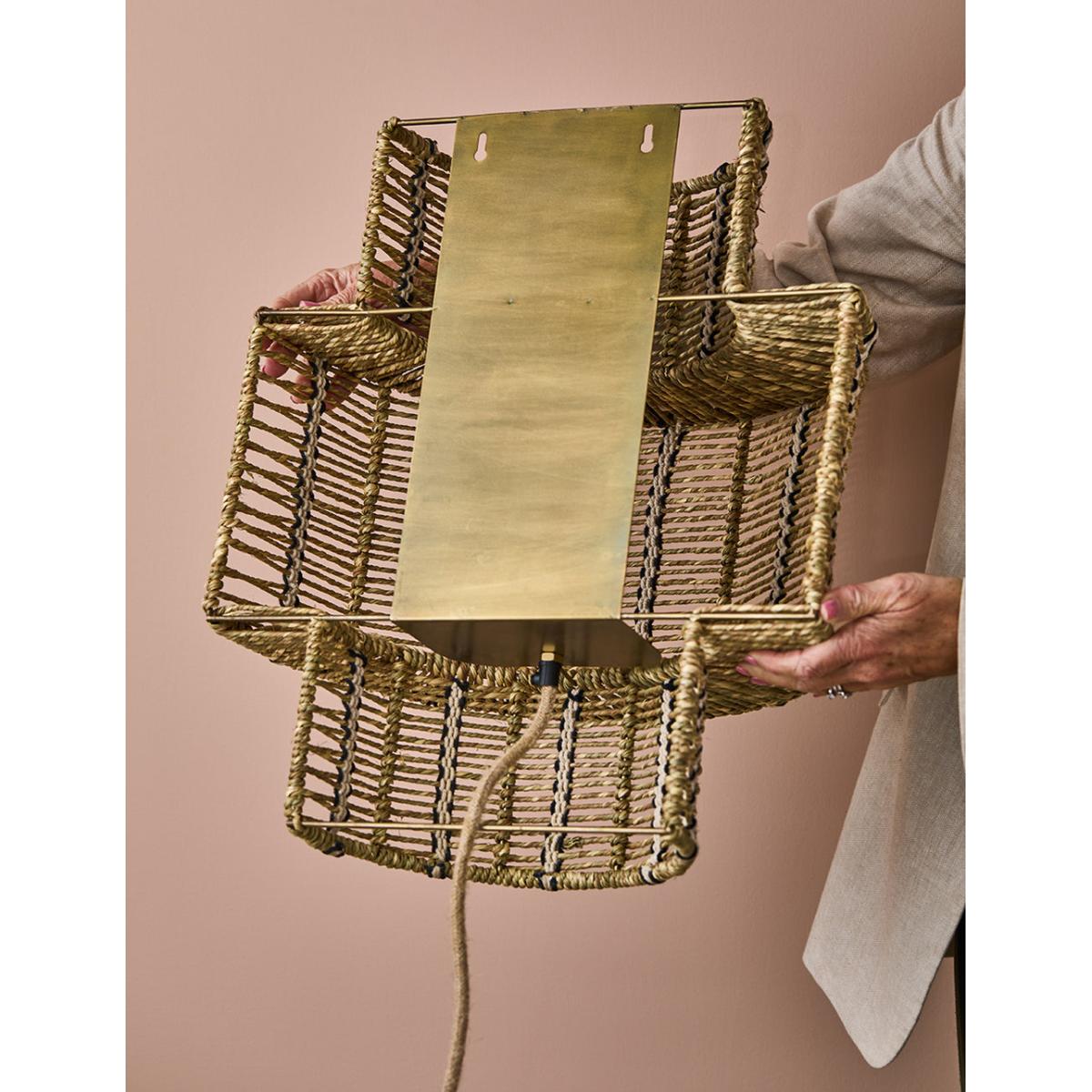 Almost more wall art than wall lamp, this substantial piece looks incredible when hung and best of all requires no special wiring - just plug in and be wowed. Accented with a black and cream braiding detail, this is a statement piece that epitomises the handmade, braided, natural aesthetic. We love the play of light it creates when switched on.