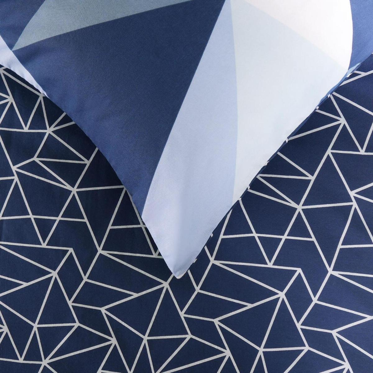 Geometric Shapes Duvet Cover with Pillowcase Set Bedding Quilt - Navy / King