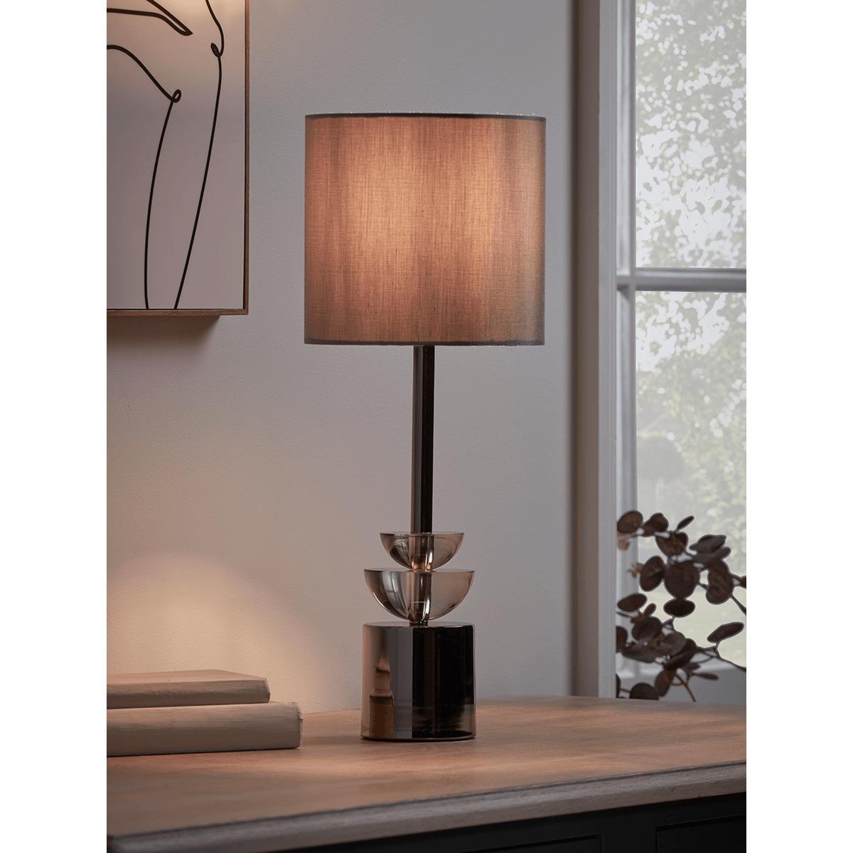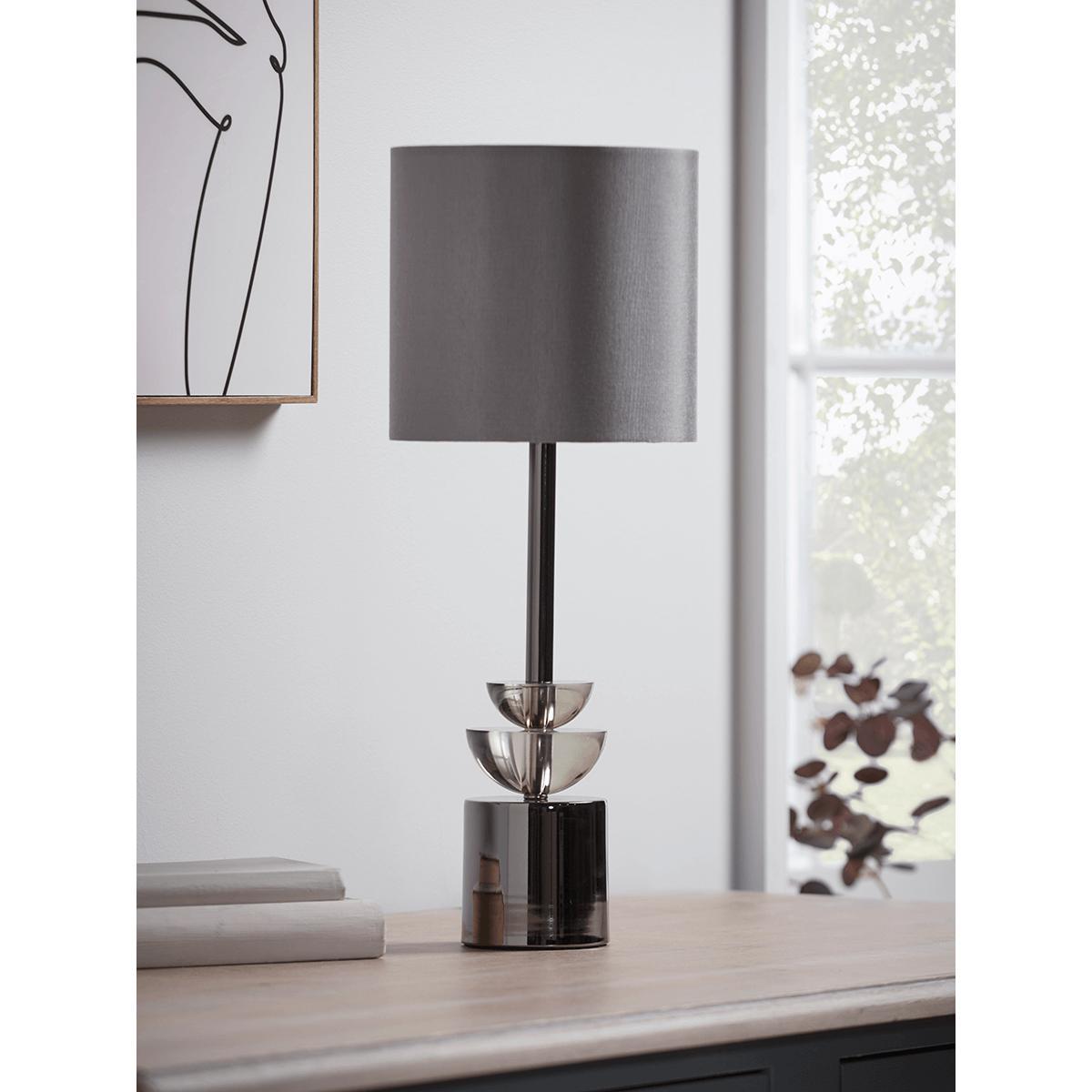 Full of statement style yet slimline in form, our lamp is the perfect solution for those smaller tables and consoles. Above the luxe, pewter finished base are two smoked finish glass half-spheres, an elegant feature that creates an eye-catching silhouette. Discover how to create the perfect lighting scheme for your home using our.