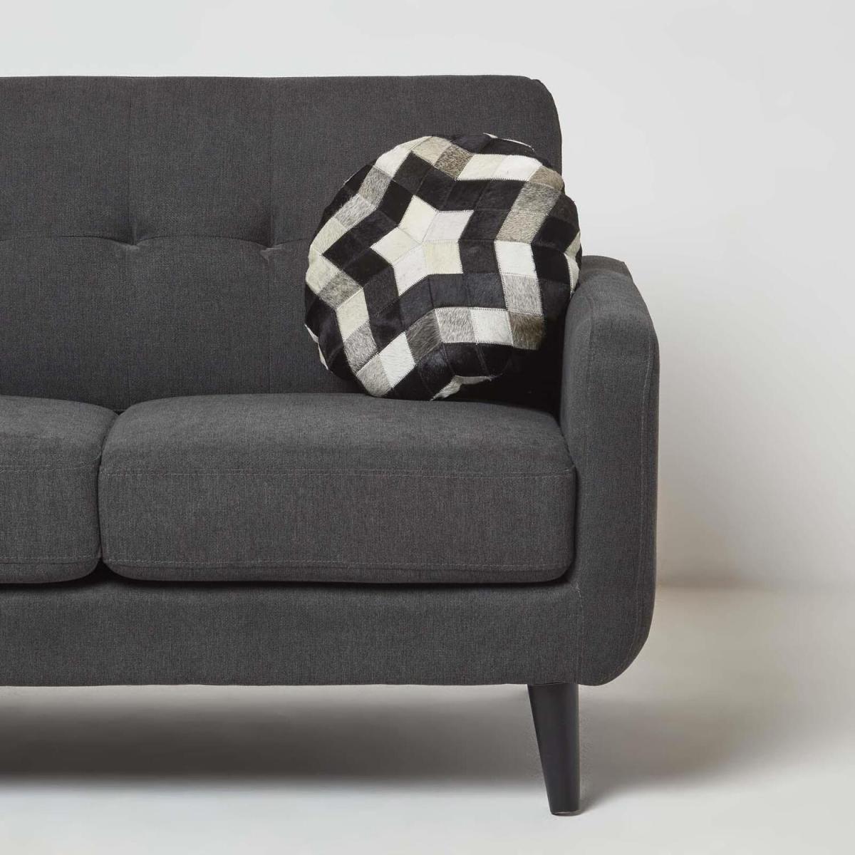 Add colour, style and comfort to your home with Homescapes exclusive collection of leather cushions. Handcrafted from sustainably sourced leather, each cushion is carefully crafted and finished to the highest standards and is backed with a durable suede leather. This extensive collection includes diamond, block check and geometric patterns all finished in a range of neutral tones including cream, grey and brown. Ideal for modern and traditional style interiors, leather accessories introduce an on-trend textured look that will complement bold and neutral settings. Ideal for use on sofas, armchairs and beds, they provide comfort and support whilst also injecting a touch of style into any room. Generously filled with a super microfibre cushion pad, this cushion is ideal for allergy sufferers and will remain thick and plump and will not flatten over time. Featuring a zip closure on the reverse, cushion inserts can be machine-washed and leather cushions can be spot-cleaned when required. Measuring 45 x 45 cm, cushions are the perfect size for styling in pairs or why not mix and match with plain suede or cotton cushions to create the perfect look Part of Homescapes exclusive collection of leather homeware and accessories, co-ordinating rugs and footstools are also available in a range of colours and designs.