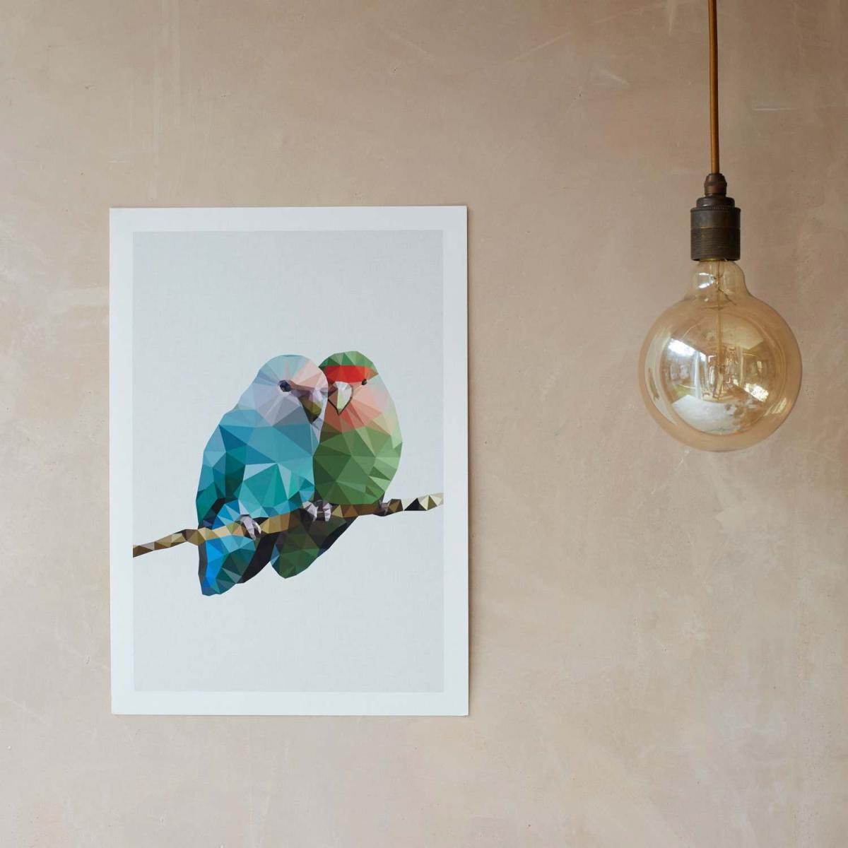 Our Geometric Two Love Birds Print is an adorable piece of wall art for both birds lovers and romantics. The geometric design is striking, promising to detail your wall with intrigue. Whether you choose to frame the contemporary print or keep as a poster we are certain it will find a place on your bedroom wall.