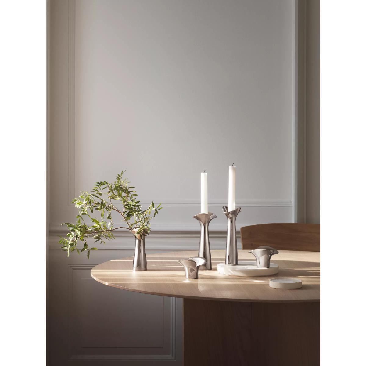 Designed by Helle Damkjær for Georg Jensen, the Bloom Botanica vase is shaped to mimic the moment a flower bud opens and the petals unfurl. It aims to bring a sense of optimism and delight to the home much like the early, bright days of spring after the harshness of winter. As part of her design process Damkjær creates each of her products by hand in clay, giving her time to find the shapes she's looking for. This gives her pieces a sculptural quality and means this vase works as a decorative stand-alone piece without flowers, as well as for its primary purpose of displaying favourite blooms.