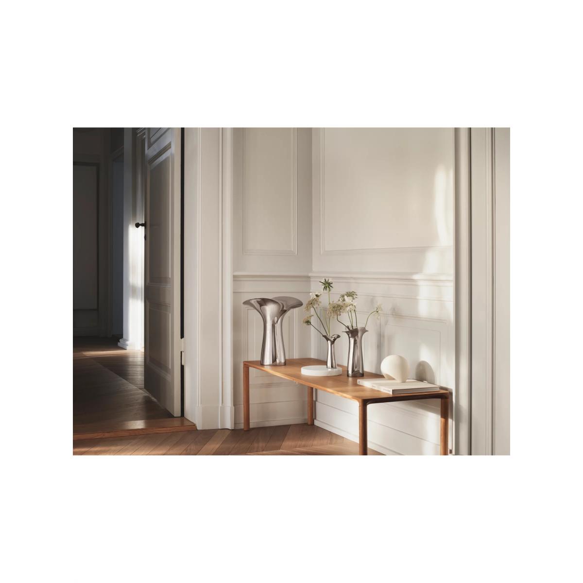 Designed by Helle Damkjær for Georg Jensen, the Bloom Botanica vase is shaped to mimic the moment a flower bud opens and the petals unfurl. It aims to bring a sense of optimism and delight to the home much like the early, bright days of spring after the harshness of winter. As part of her design process Damkjær creates each of her products by hand in clay, giving her time to find the shapes she's looking for. This gives her pieces a sculptural quality and means this vase works as a decorative stand-alone piece without flowers, as well as for its primary purpose of displaying favourite blooms.